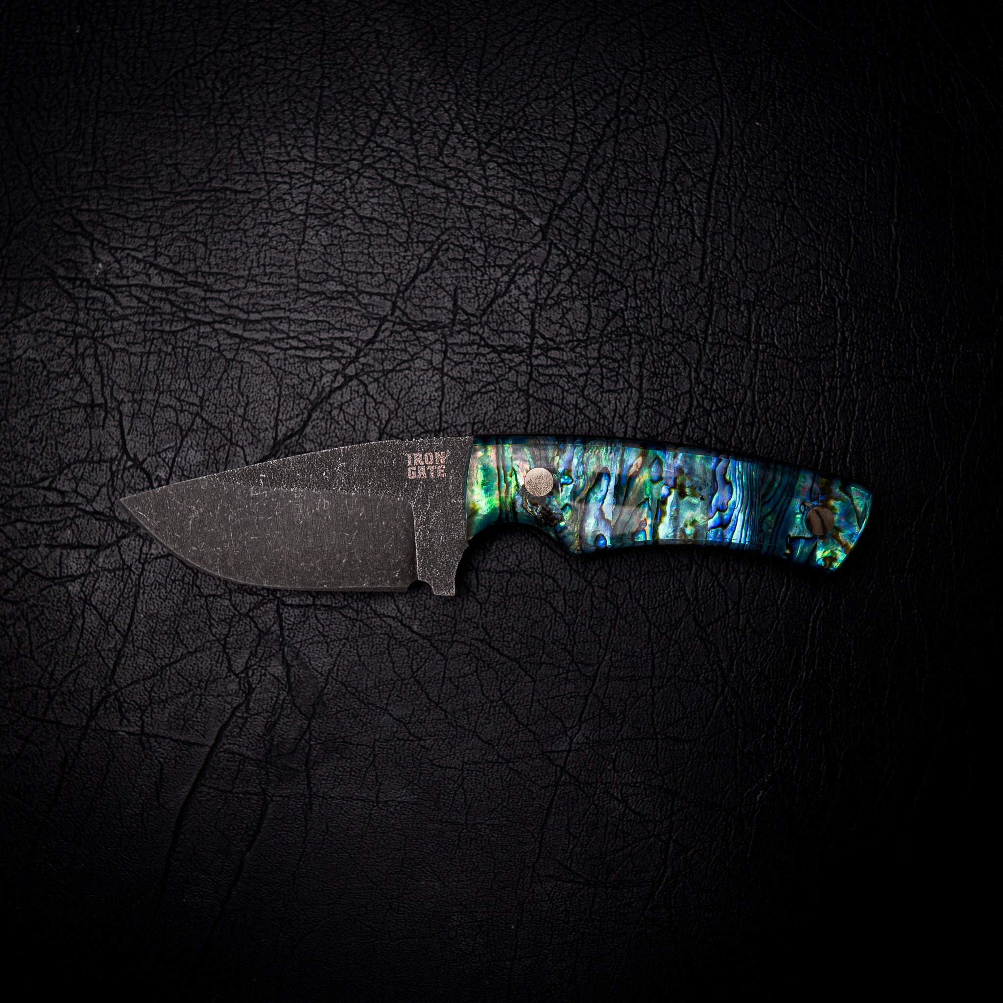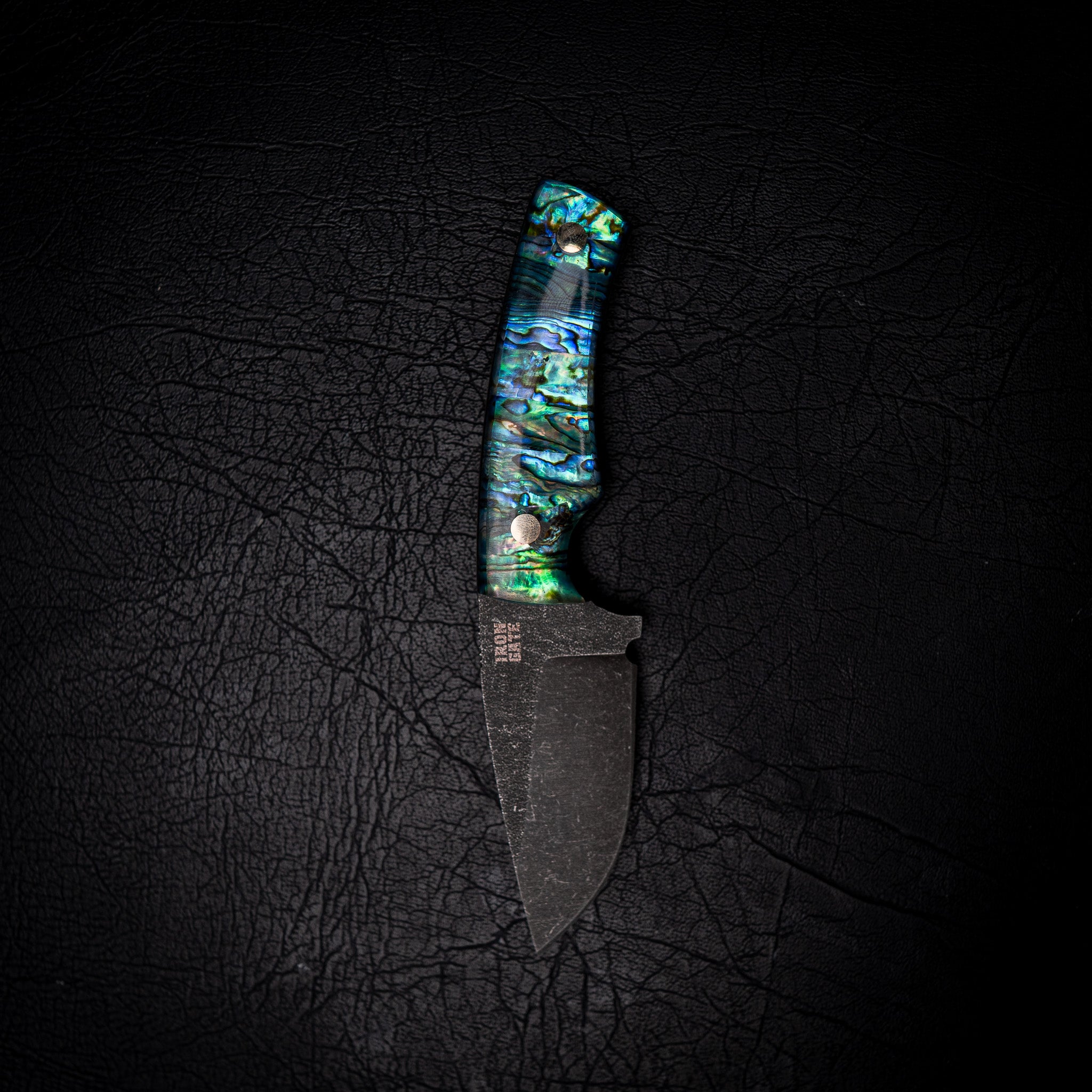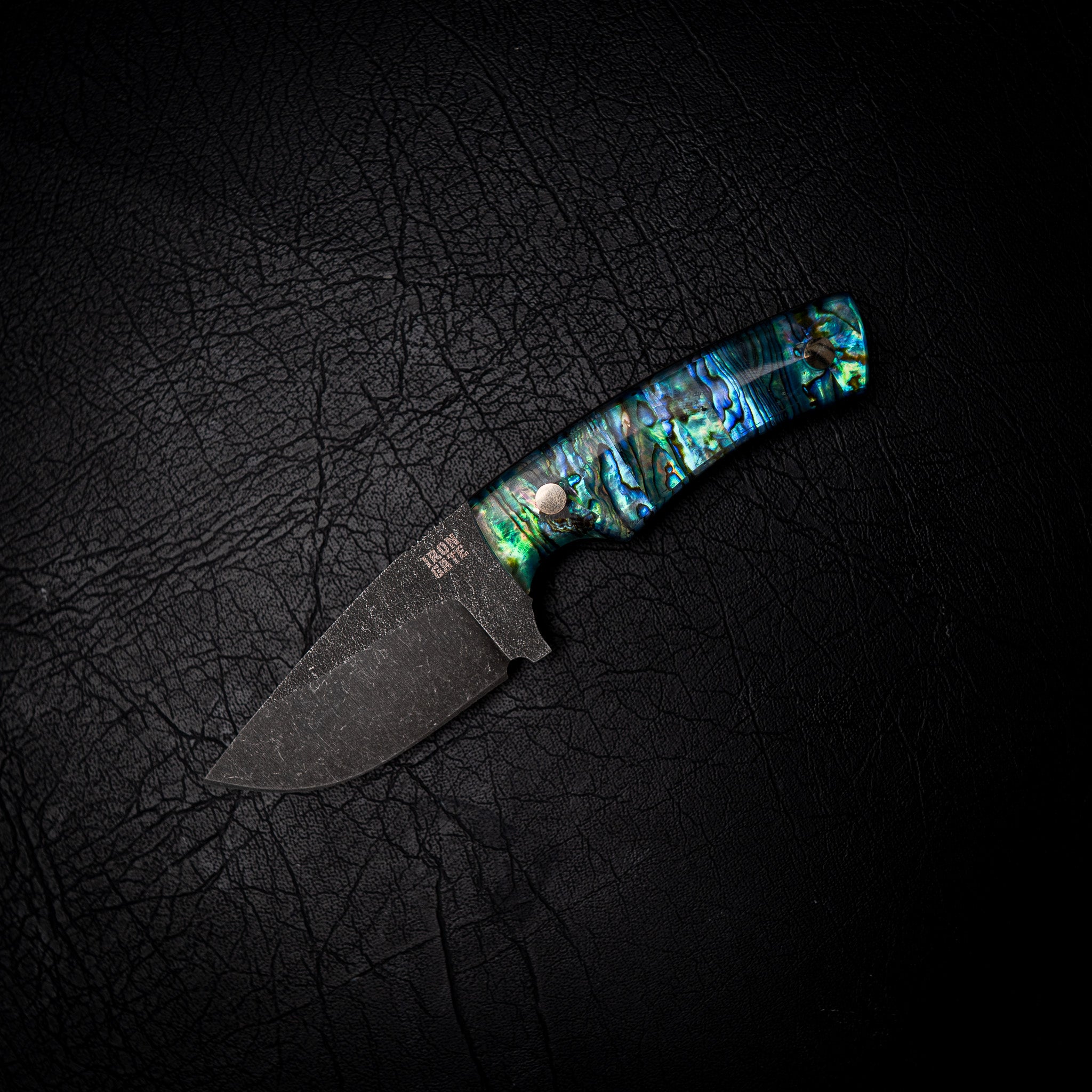 The handle is crafted from Natural Abalone (Pāua) Shell, set in crystal-clear, impact-resistant resin — capturing the ocean’s shifting colours of blue, green, and violet in a stunning, glass-like finish. Each handle is shaped and polished by hand for perfect comfort and control.