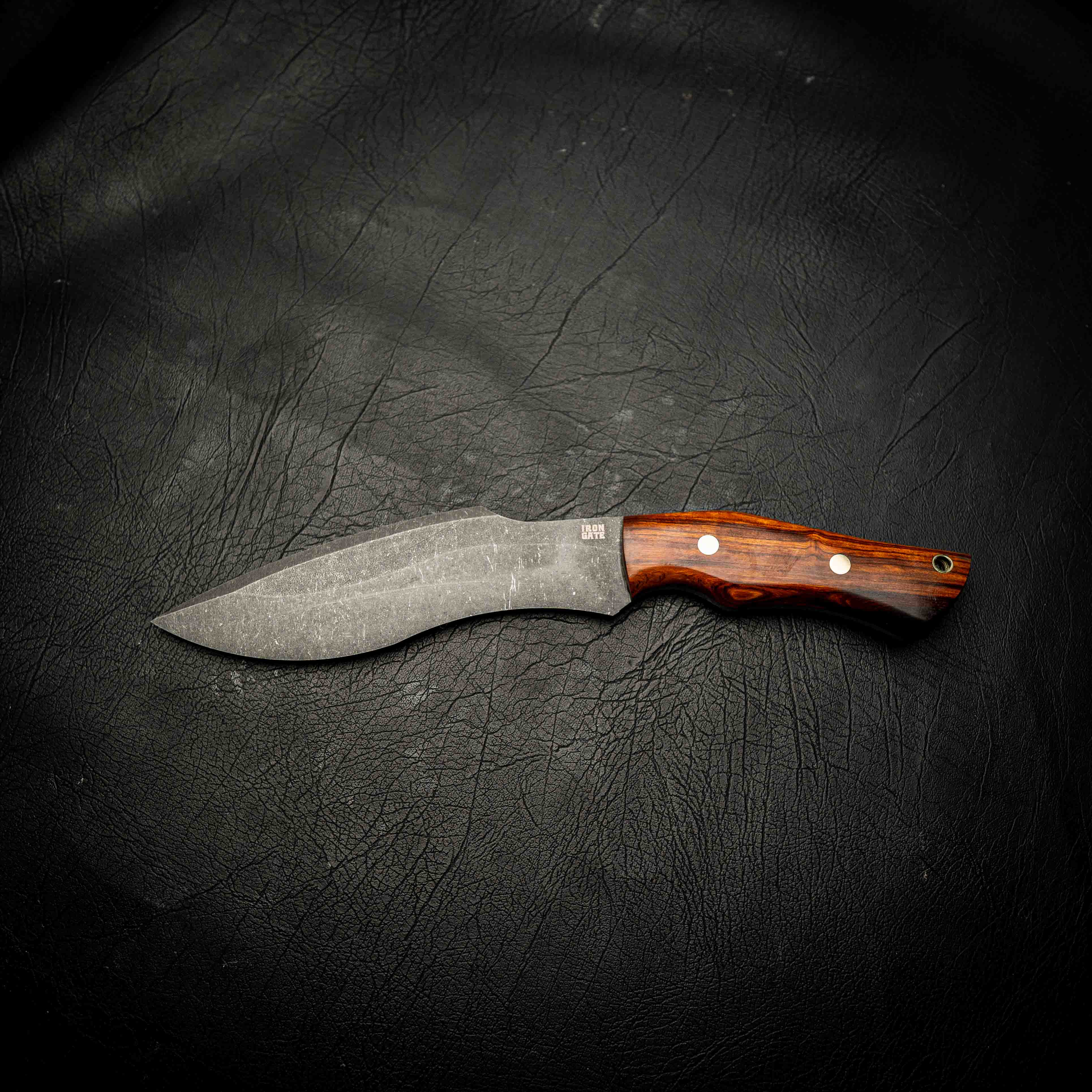 Our Stonewashed Kukri is forged from N690 stainless steel with a dark stonewashed finish and a strong 5mm spine, delivering that classic forward-weighted Kukri power with a smooth, controlled feel. Built tough, balanced, and ready for real work.