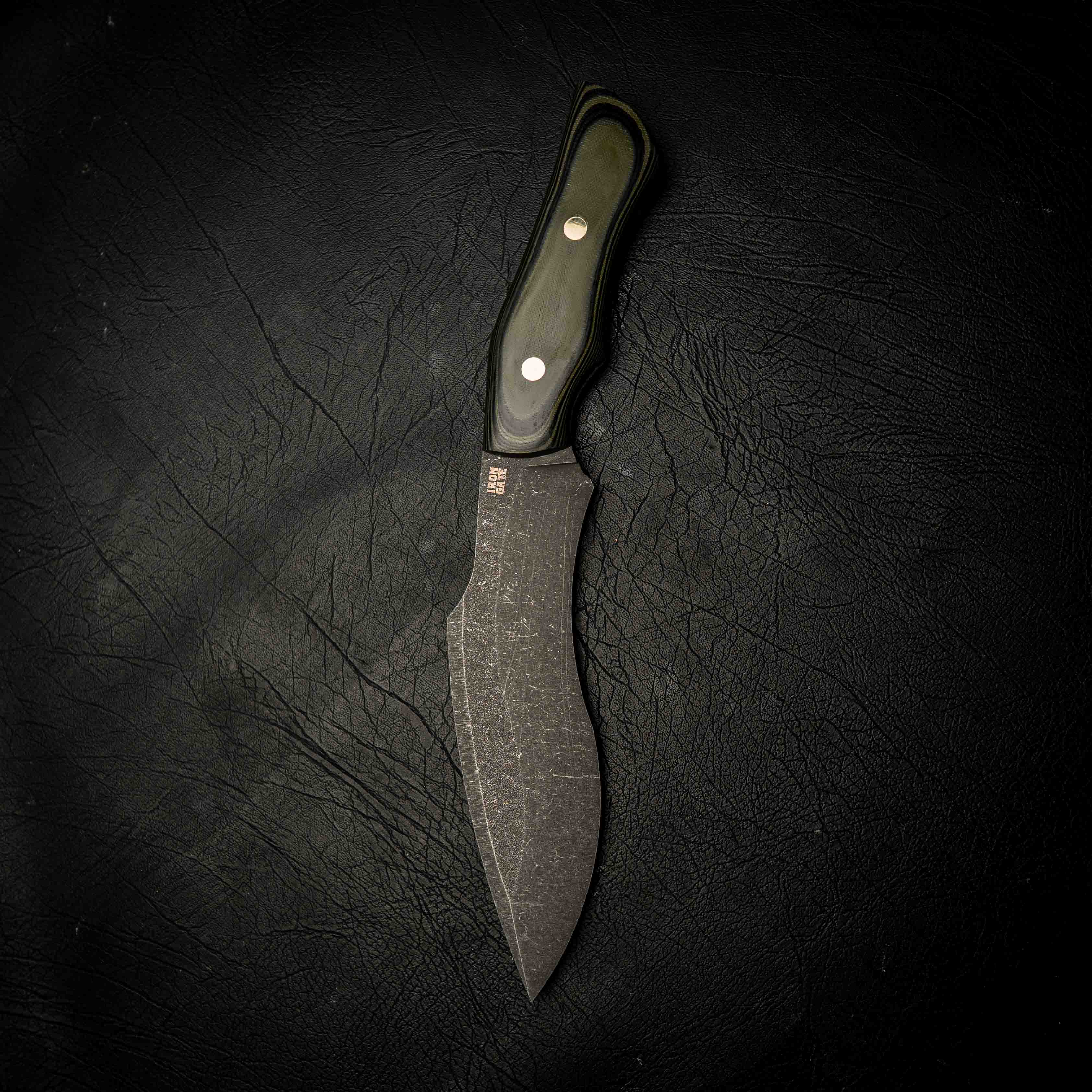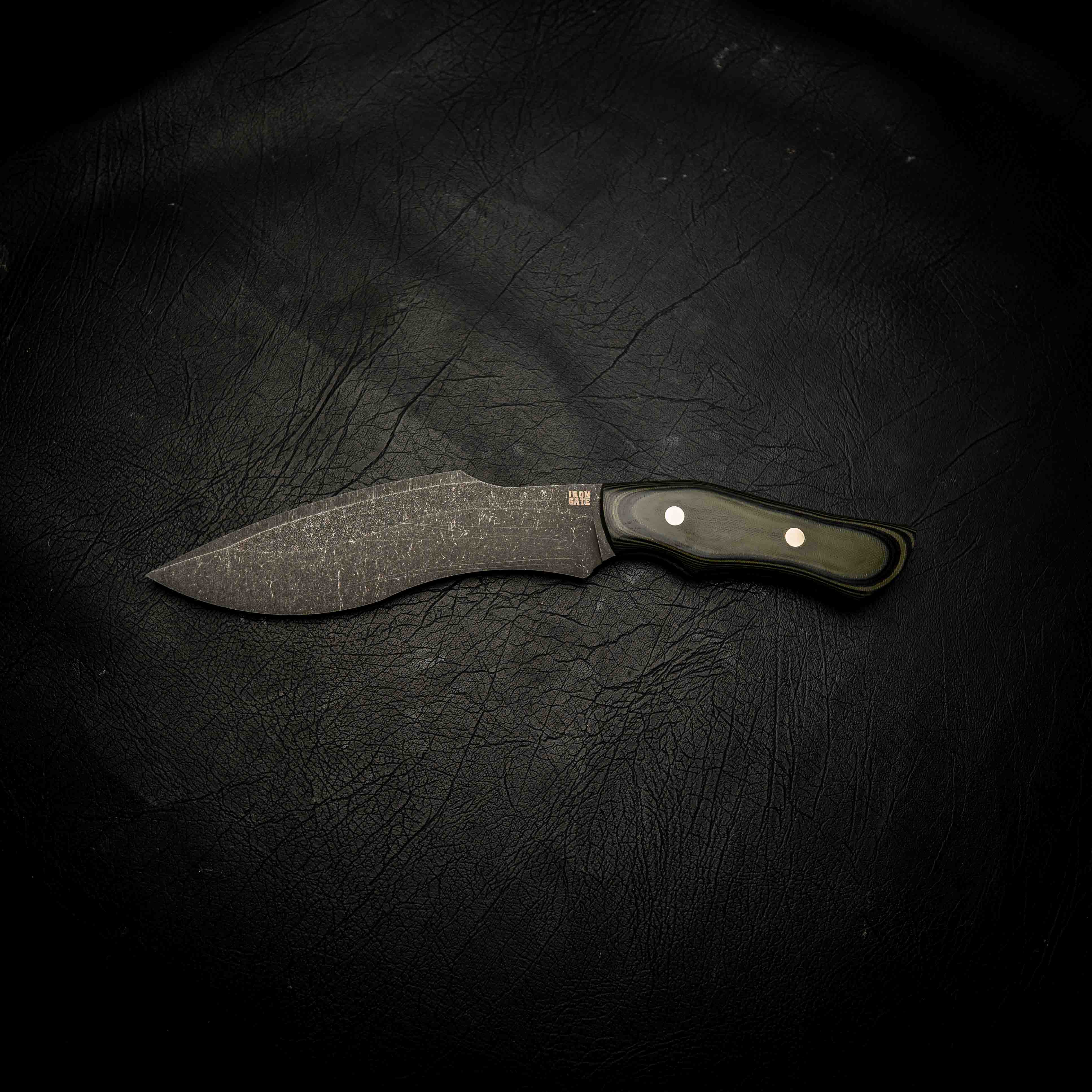 Our Stonewashed Kukri is forged for hard work — a forward-weighted N690 blade with a dark stonewashed finish and a solid 5mm spine. It carries that classic Kukri power, driving through tough jobs while still feeling balanced and responsive in the hand.