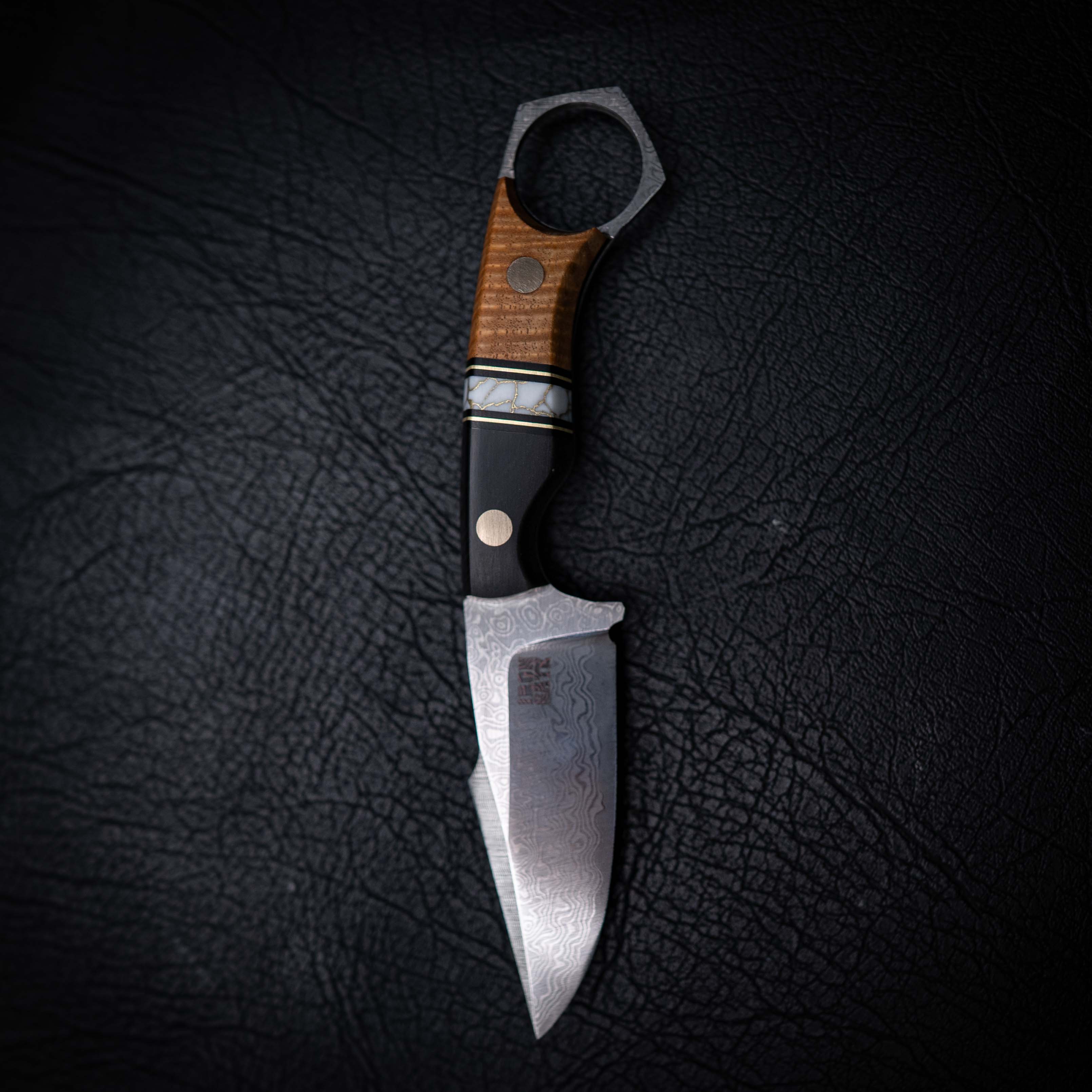 Featuring a stainless Damascus San Mai blade with a unique random-layered pattern, each knife is individually handmade in Anna Bay. Purpose-built for performance, refined for a lifetime of use.
