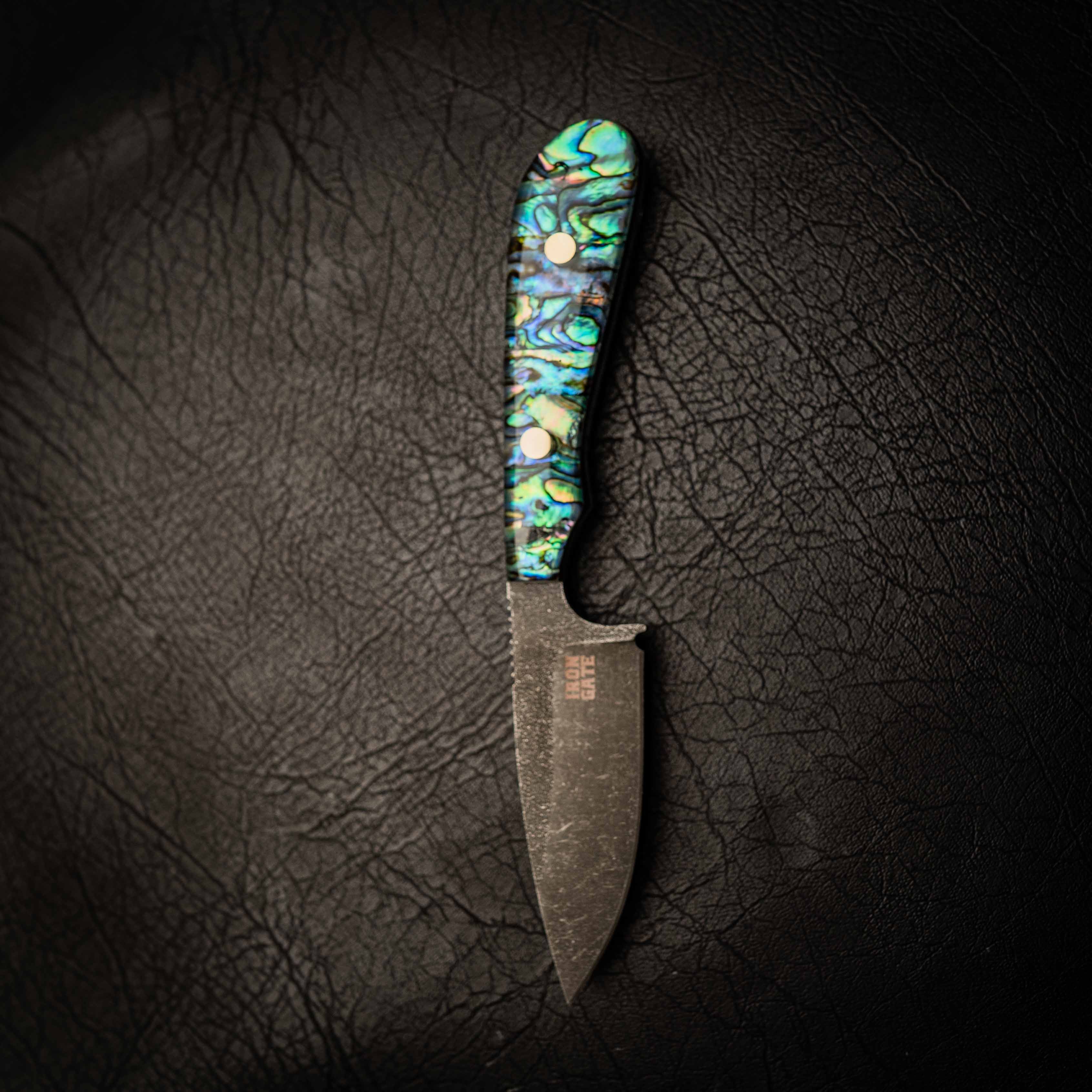 A compact, razor-sharp Ergo Skinner with a striking full paua shell handle — bold, premium and completely one-of-a-kind.