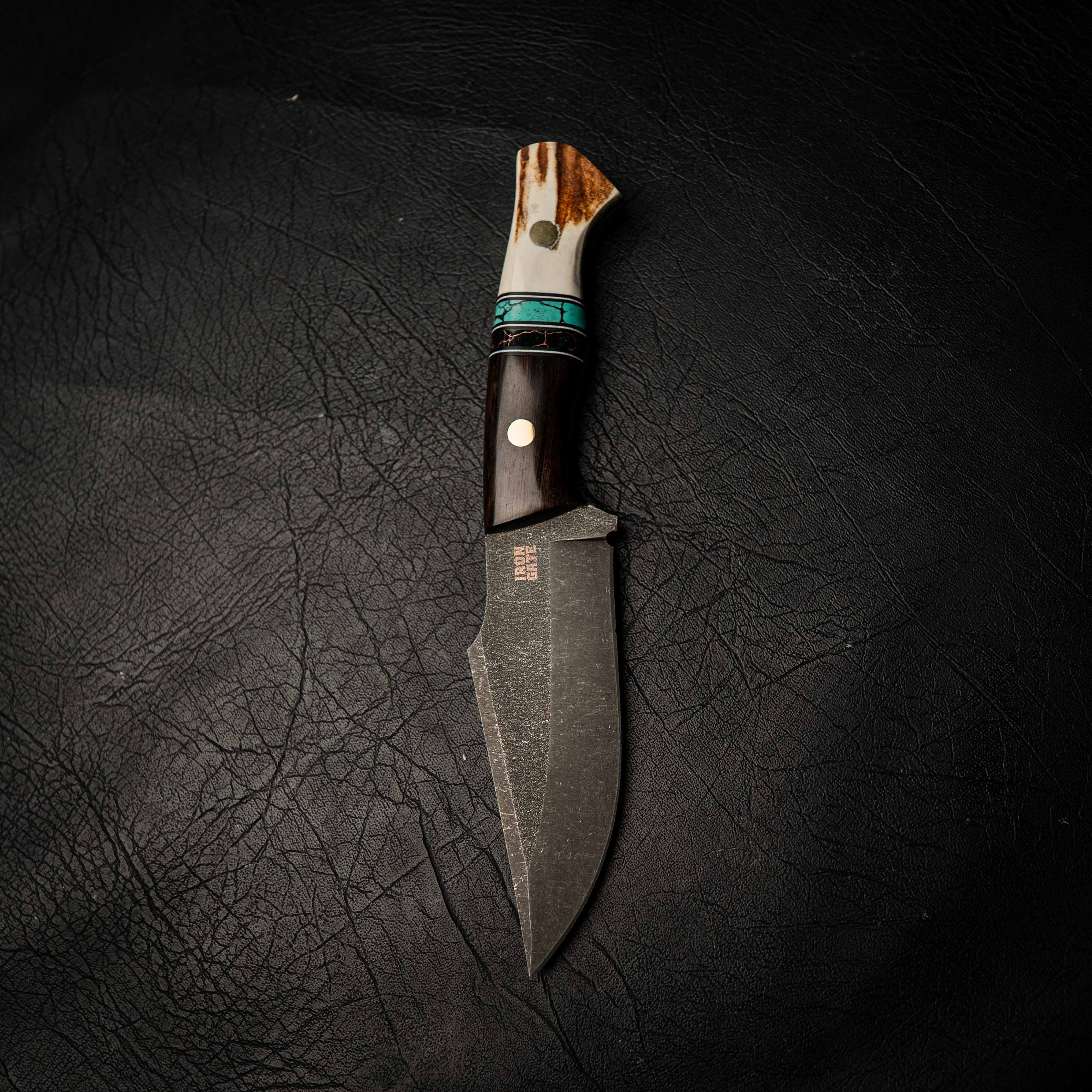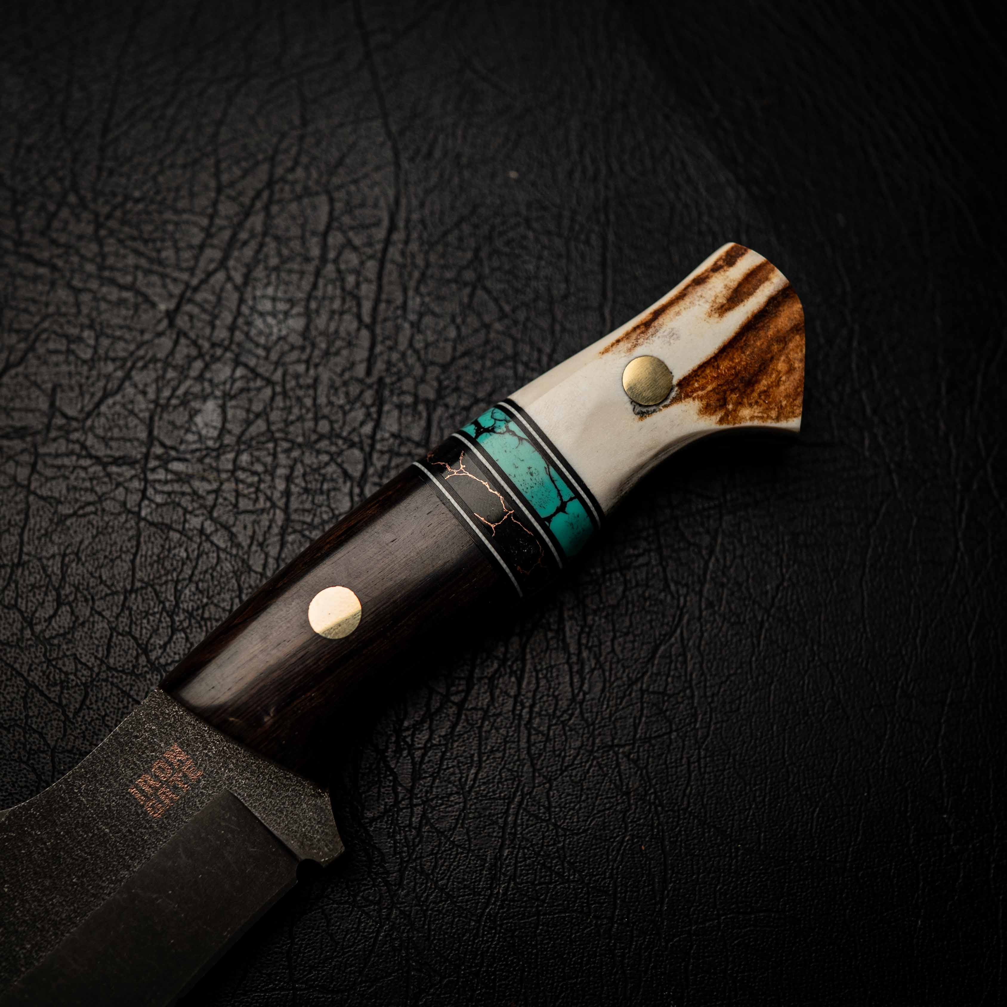 The handle starts with African Blackwood—one of the densest, most stable hardwoods on earth—deep black with subtle natural grain. It’s finished with a bold TruStone inlay for contrast, and capped with natural Deer Antler for that rugged, traditional look. Every piece is shaped by hand, giving this knife its own personality.