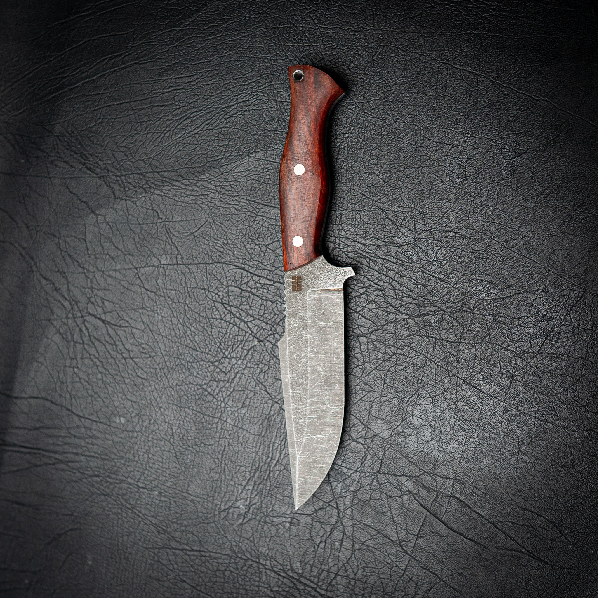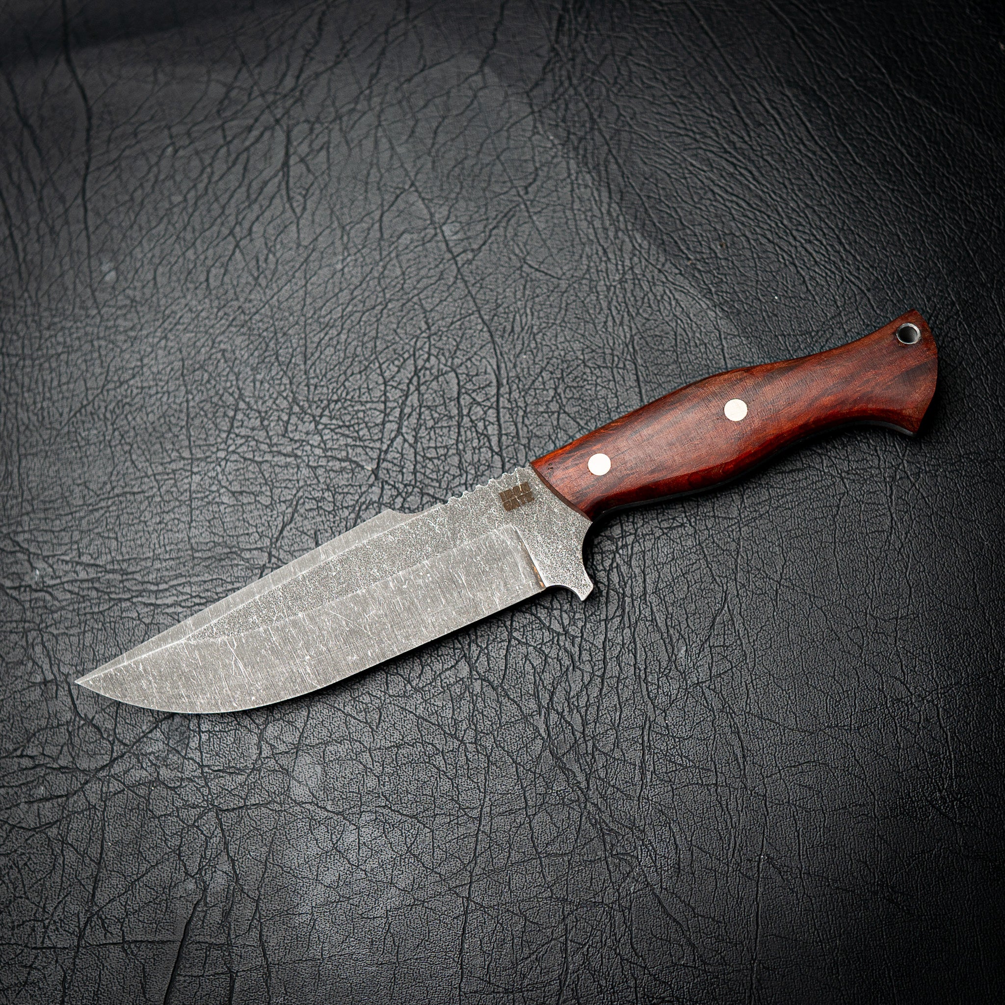 This Hunter is crafted from tough N690 stainless steel, chosen for its strength, edge retention, and corrosion resistance. Finished with a dark stonewash, it’s ready for hard use in the field, workshop, or camp.