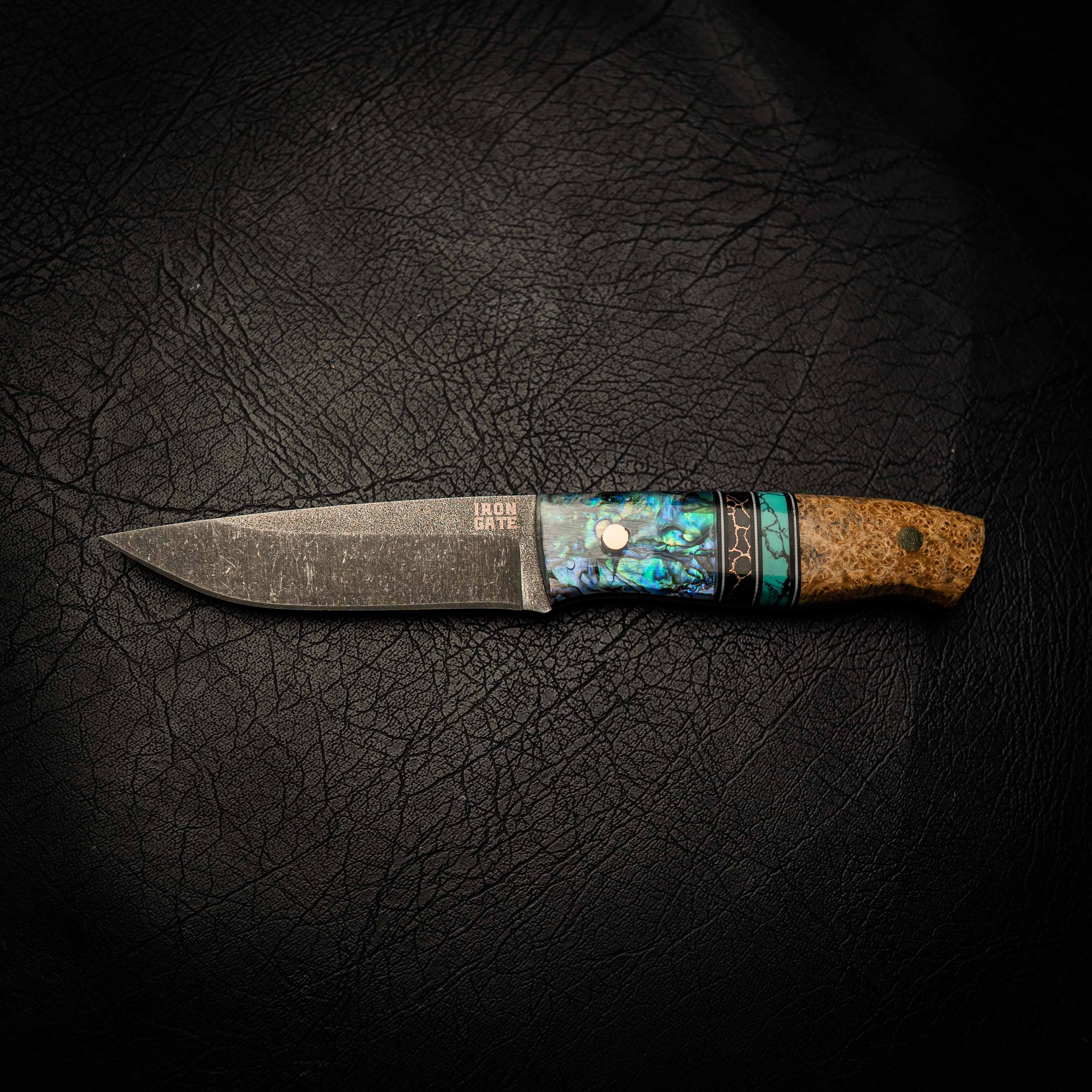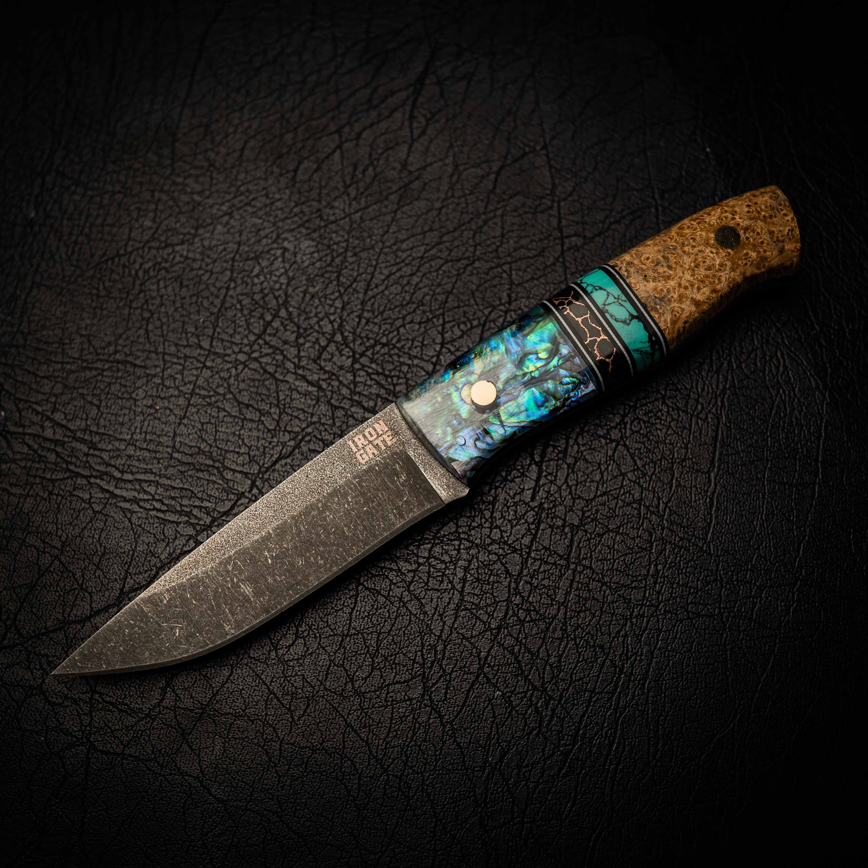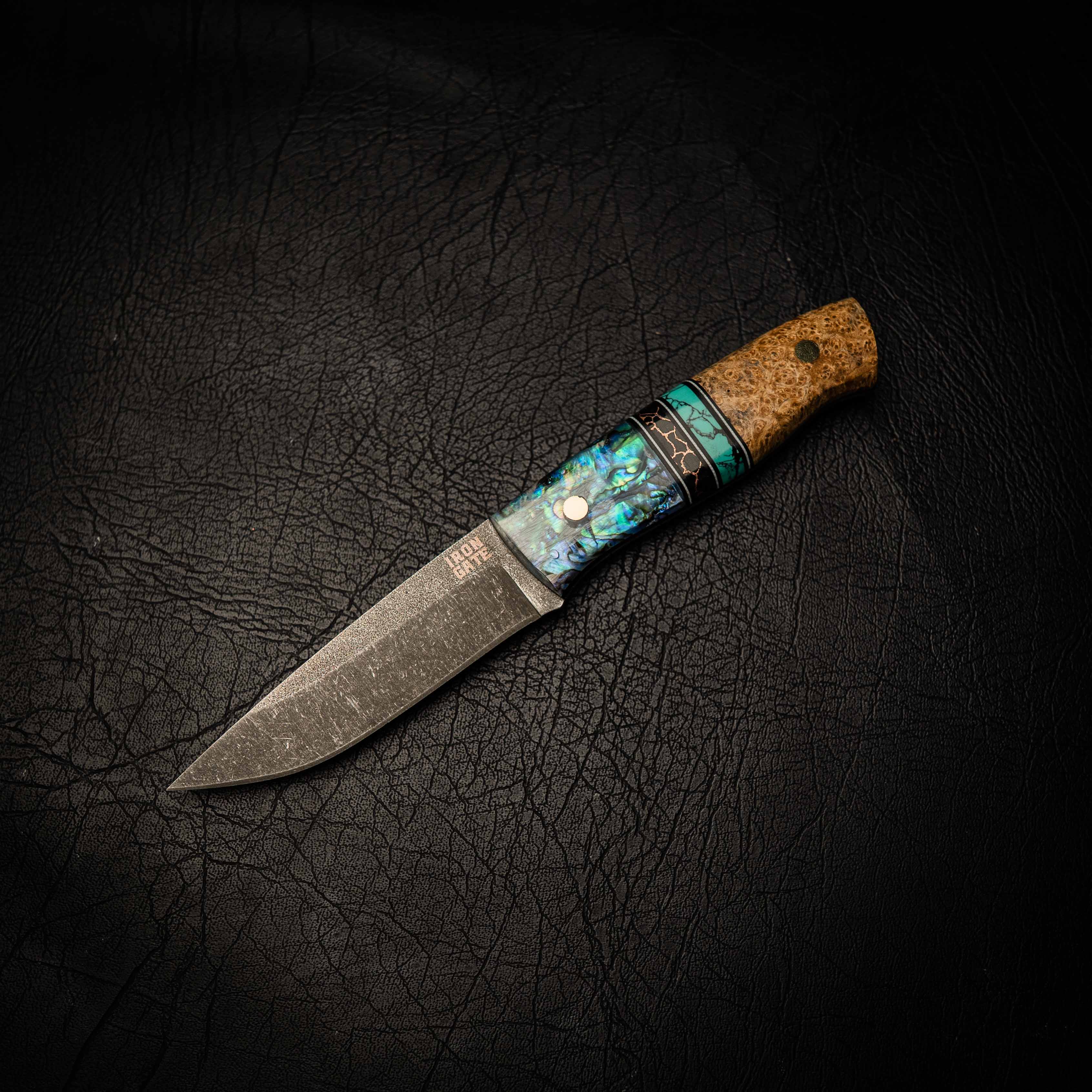 This Bushcraft Knife is 210mm overall with a 95mm cutting edge, crafted from N690 stainless and finished in a dark stonewash.