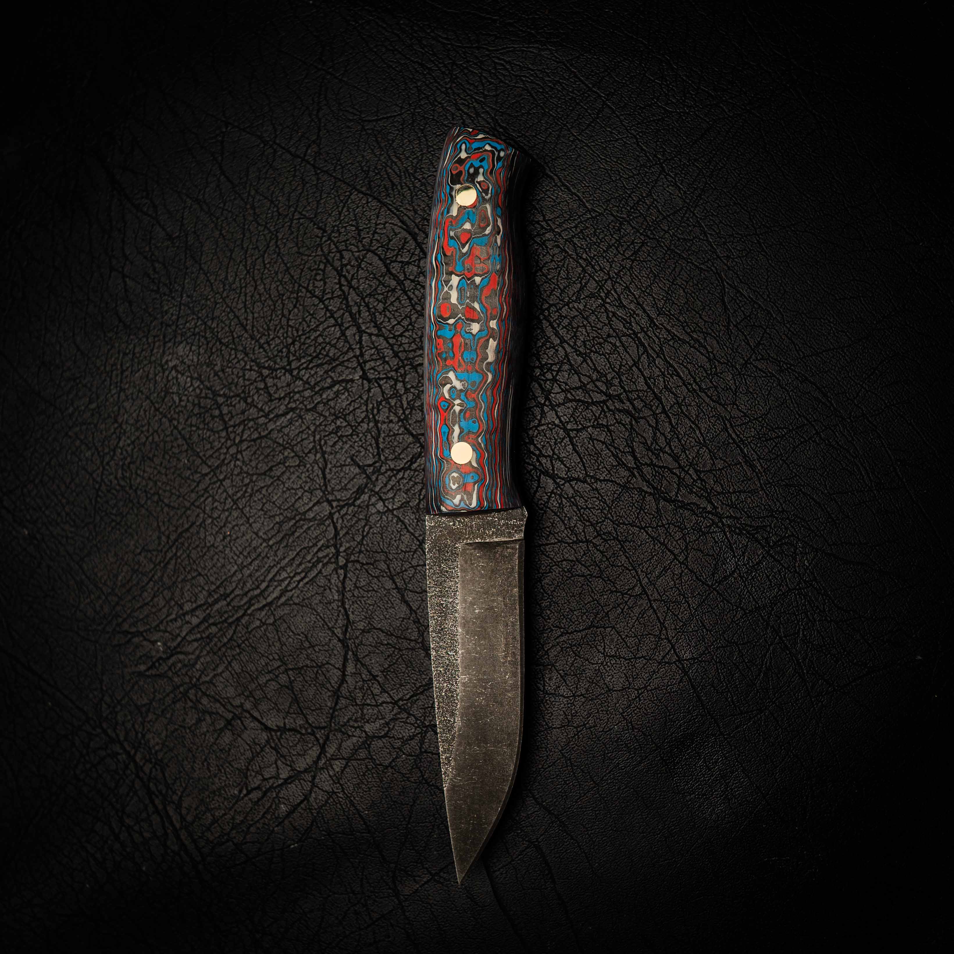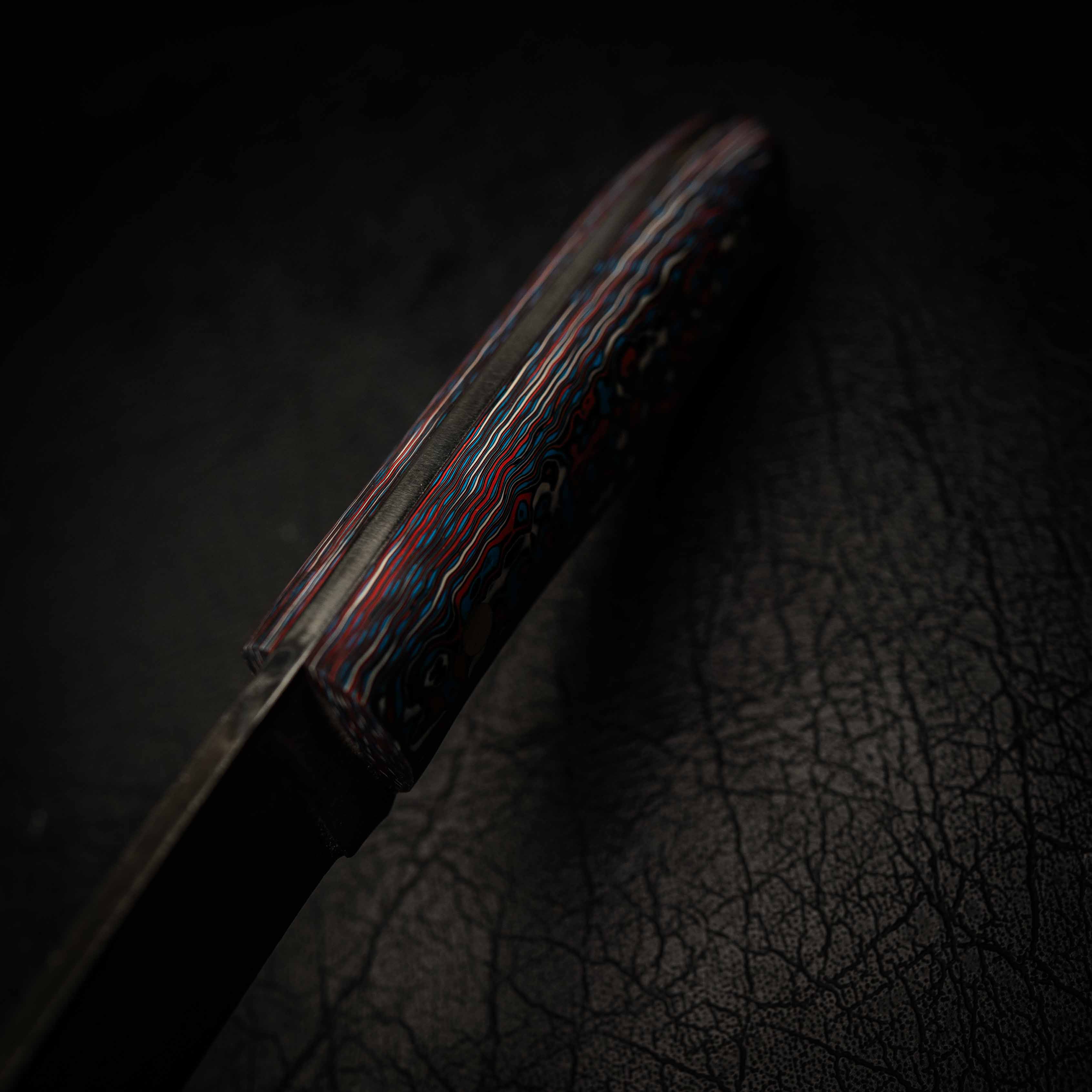 • Blue & Red Damascus Carbon Fiber segmented handle