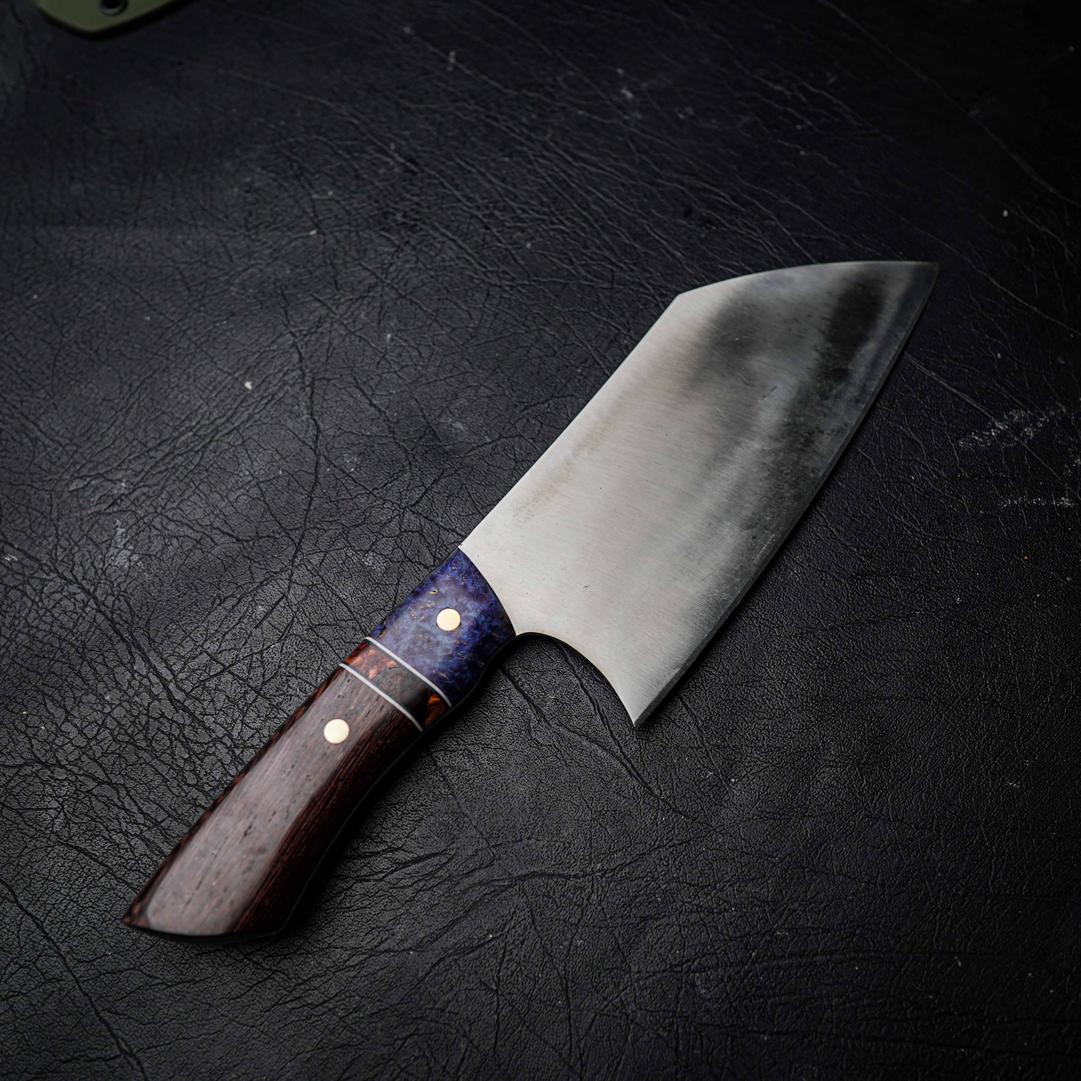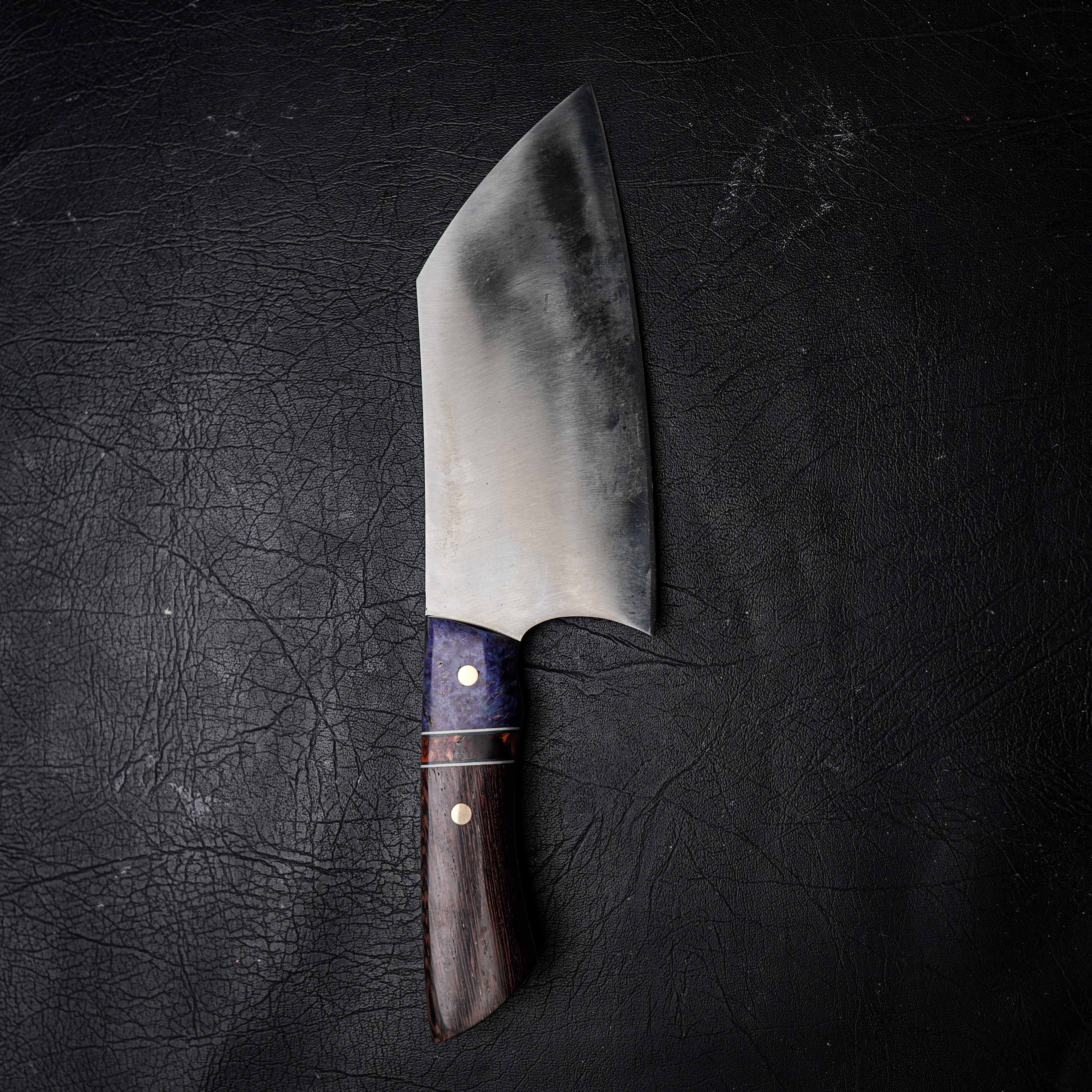 This edition features a segmented dyed and stabilised wood handle — crafted from premium hardwoods infused with vibrant colour and resin for maximum durability. The segmentation creates a bold visual transition, combining natural grain with modern artistry. Each handle is shaped and polished by hand in our Anna Bay workshop.