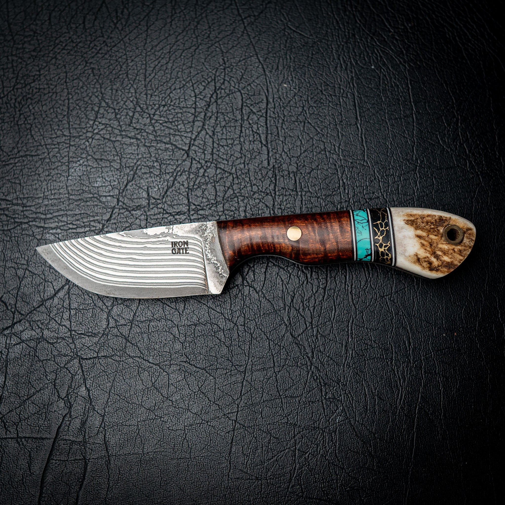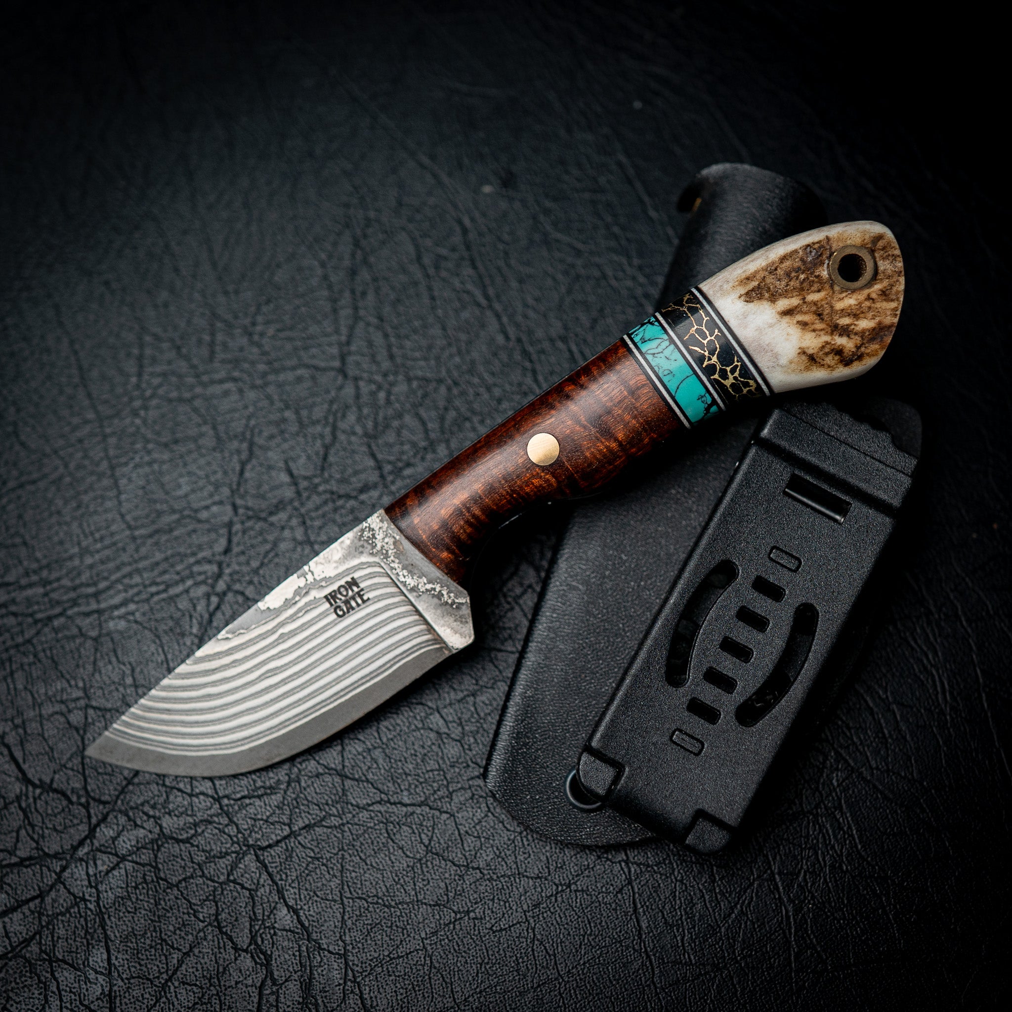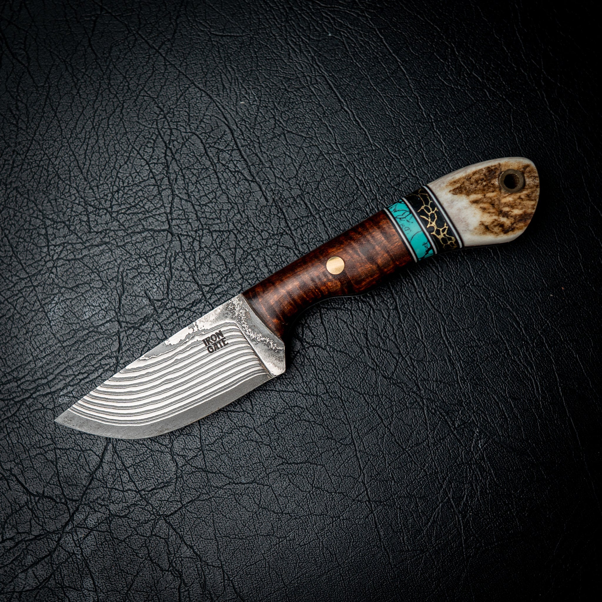 A true collector’s piece — the Iron Gate Drop Point Hunter is built for versatility in the field and crafted to stand out. Designed for hunting, skinning, and camp use, this knife blends high-performance steel with a handle that’s pure art.