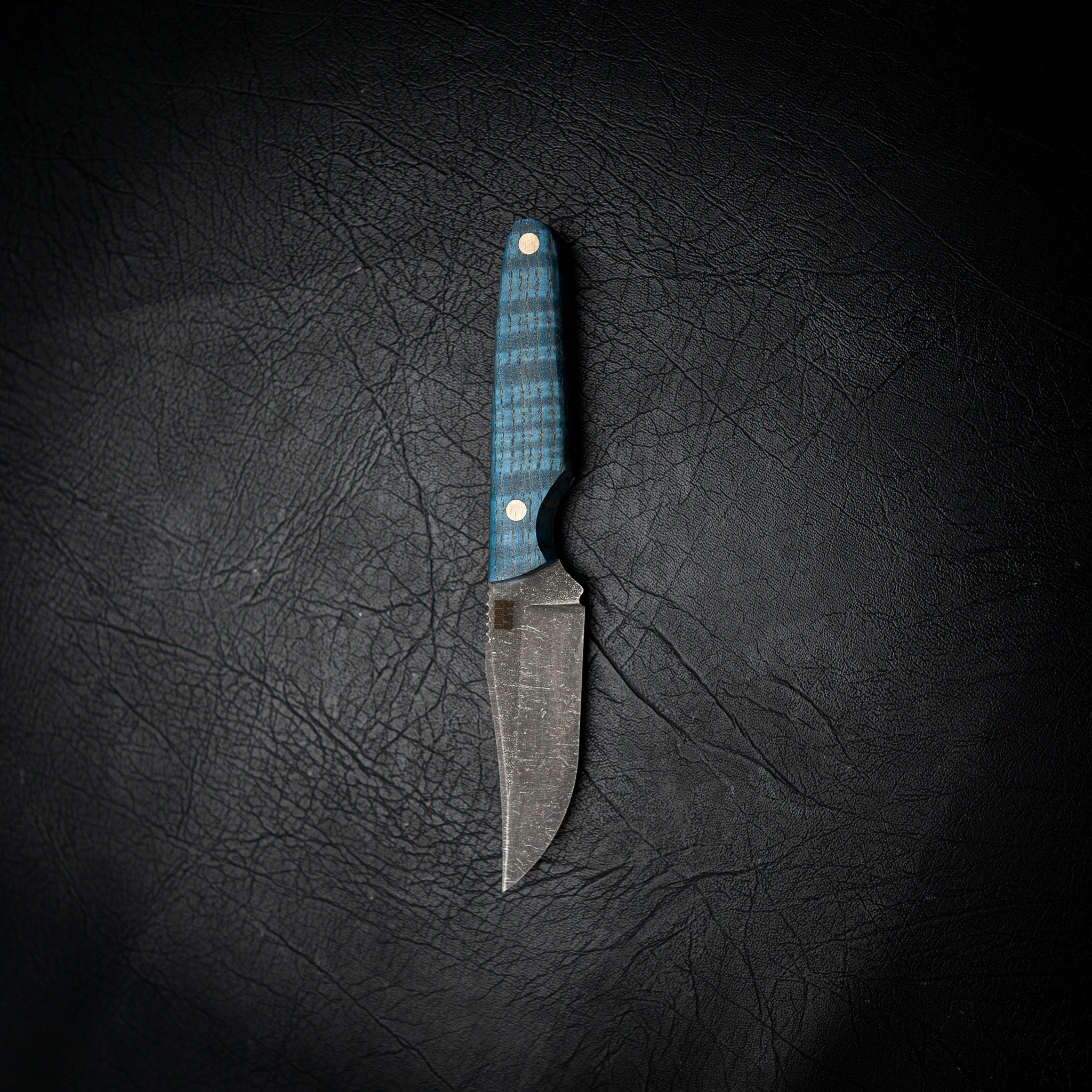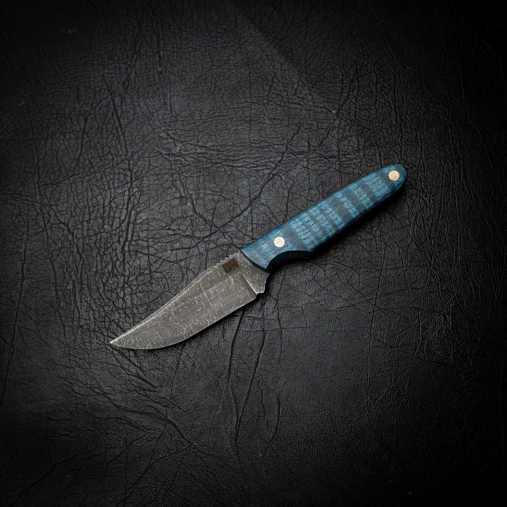 This version features a striking Blue Dyed Curly Maple handle, combining vibrant colour with the natural figure of premium maple timber. Each handle is hand-dyed, shaped, and polished to bring out unique depth and character — no two are ever the same.