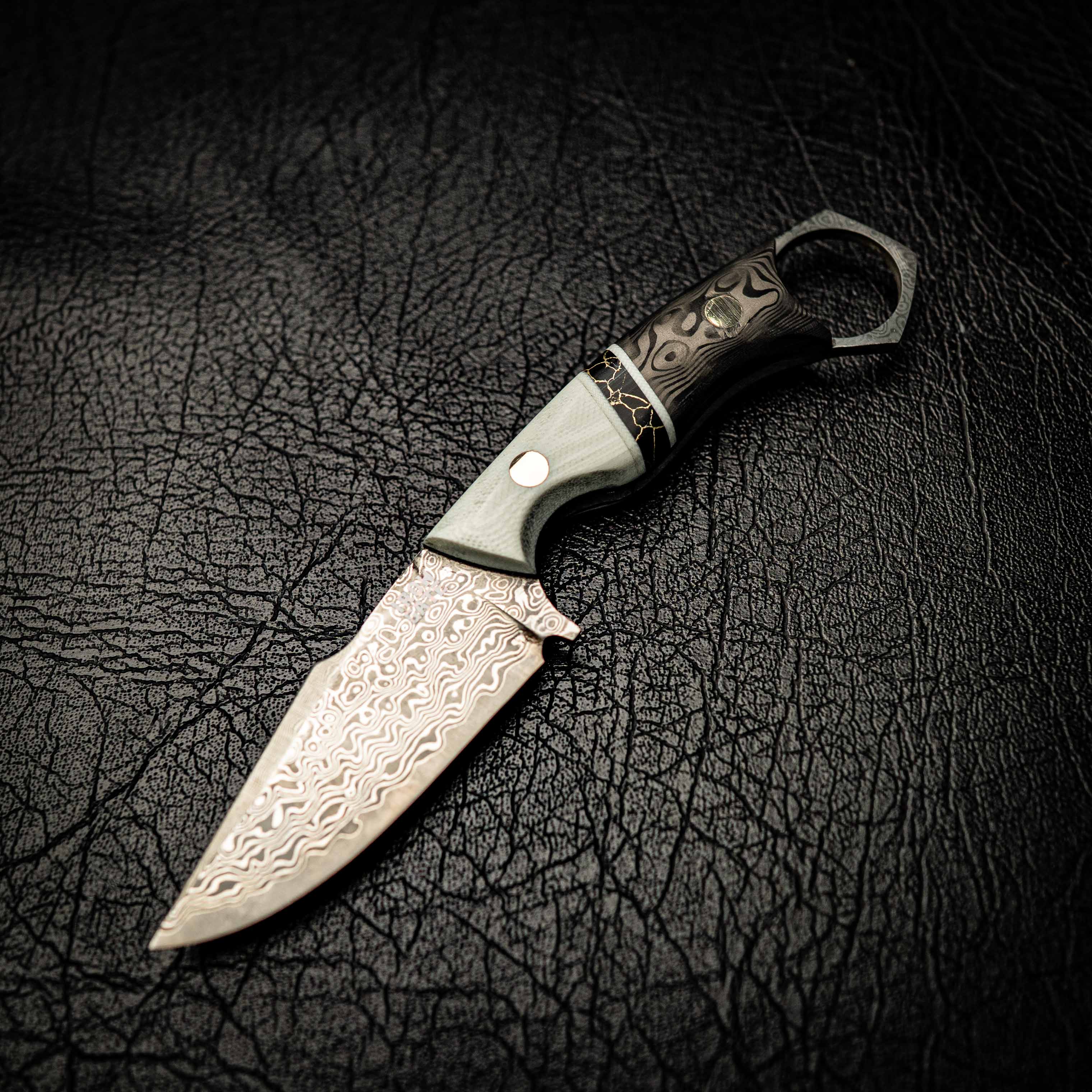 Damascus Mini Hunter – Ivory G10, TruStone & Marbled Carbon Fiber