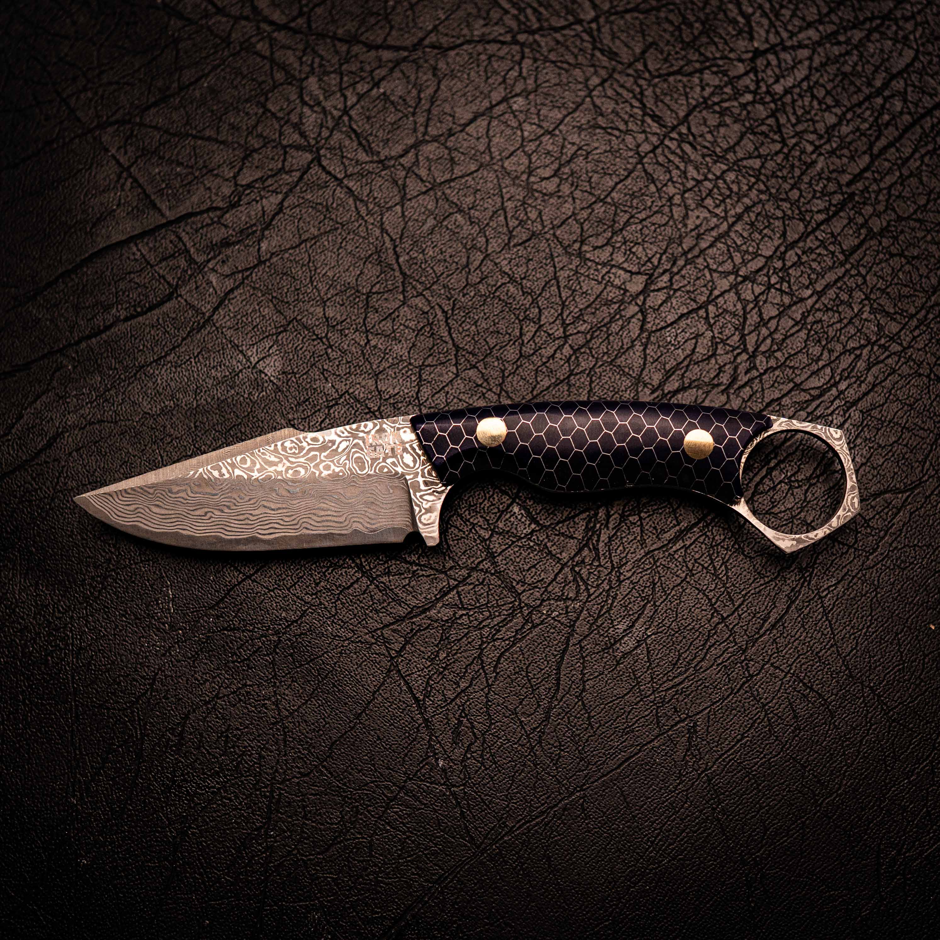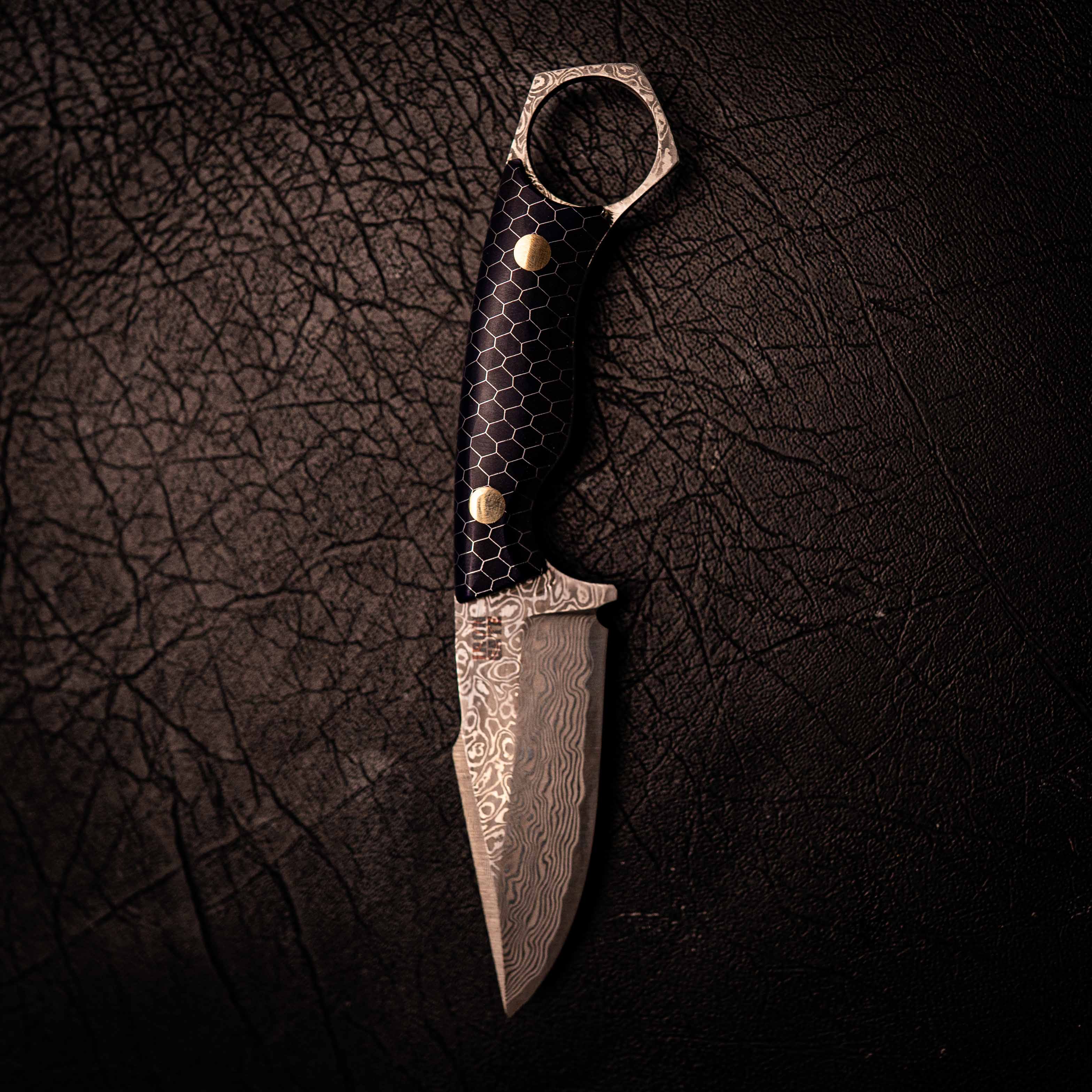 This Damascus Mini Hunter is a striking modern build with a handle that looks unreal in the hand.