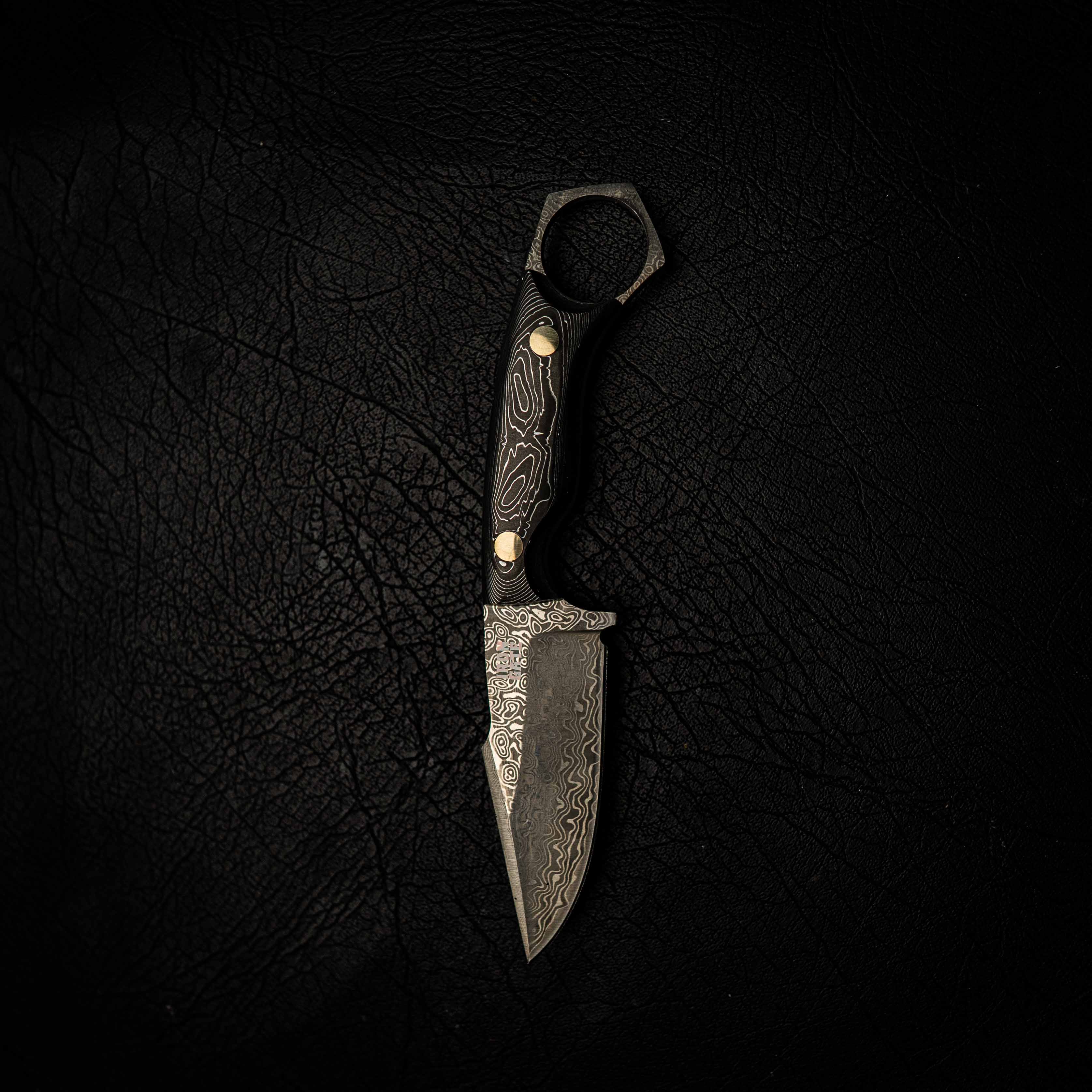 The handle scales are built from layered carbon fiber and aluminium, giving it a modern, lightweight feel with insane visual depth. Finished with brass pins for contrast and strength.