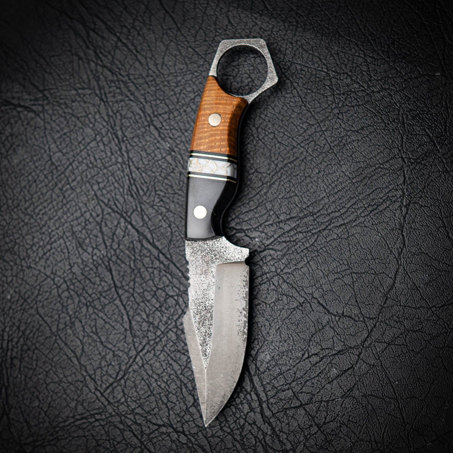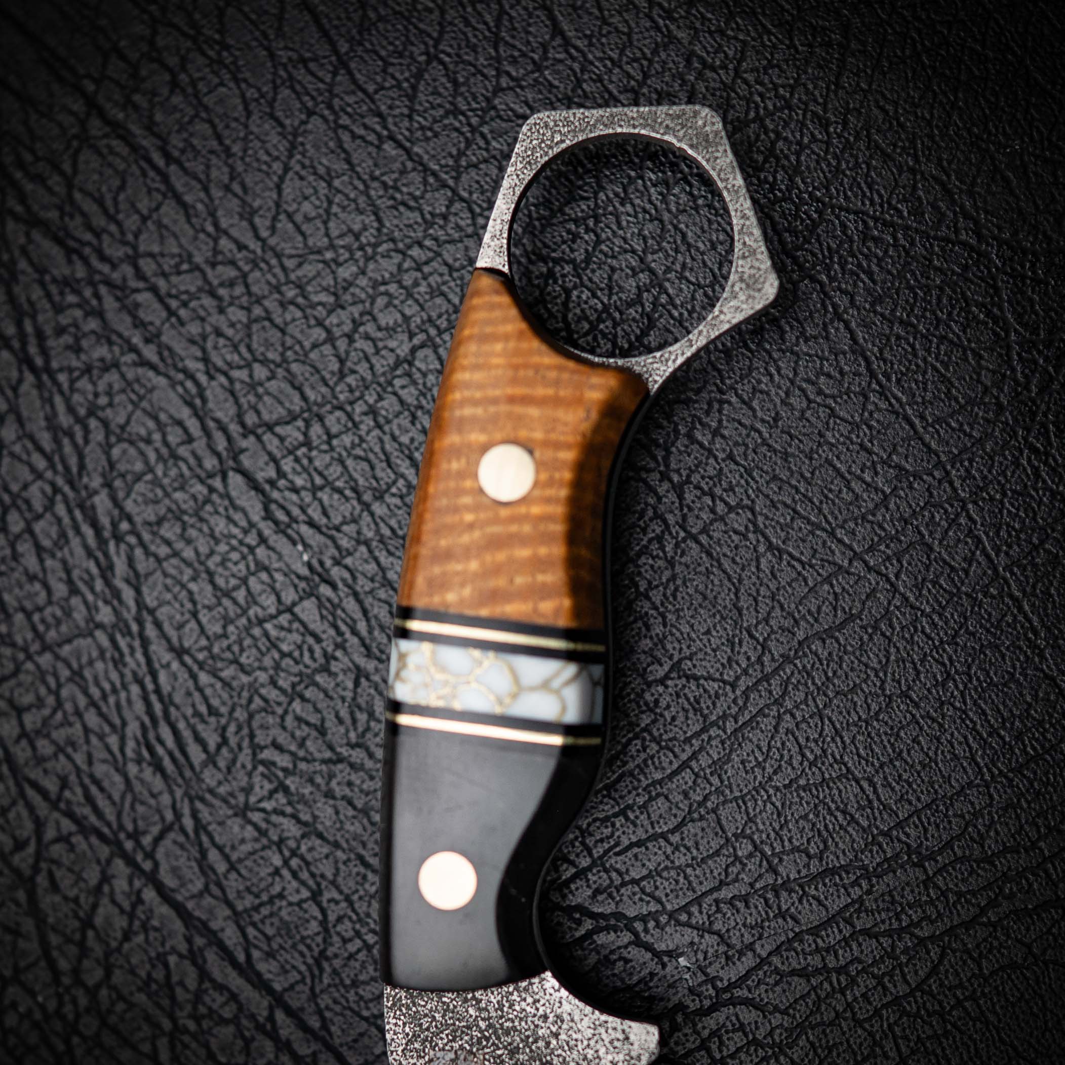 This Mini Hunter features a figured Ash wood handle, accented with White Trustone, brass spacers, and a Black Juma end cap — a combination that balances timeless style with everyday functionality.