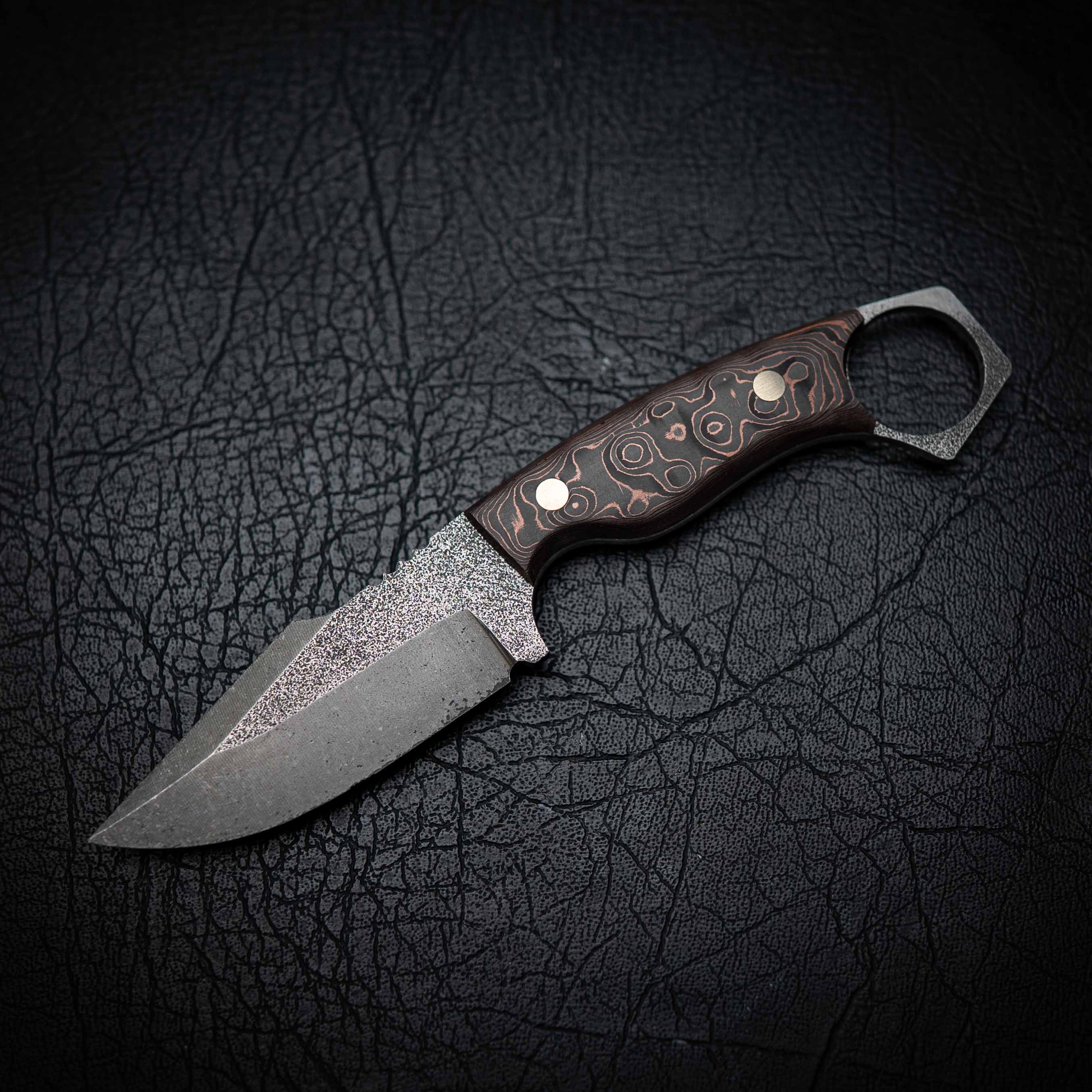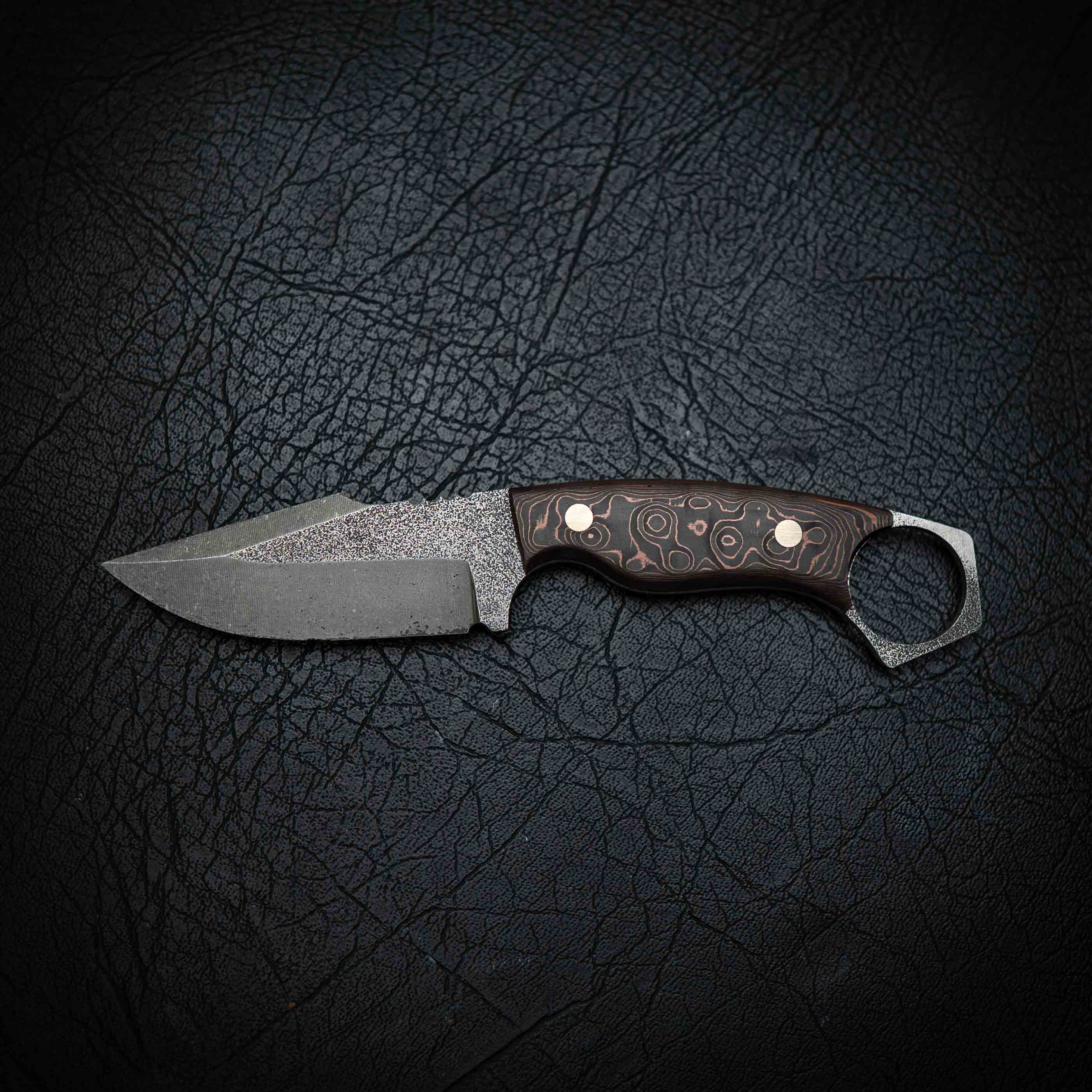 This Mini Hunter features a CopperCamo FatCarbon handle, blending carbon fiber strength with rich copper tones for a striking, high-performance finish. Lightweight, durable, and built to handle years of hard use.
