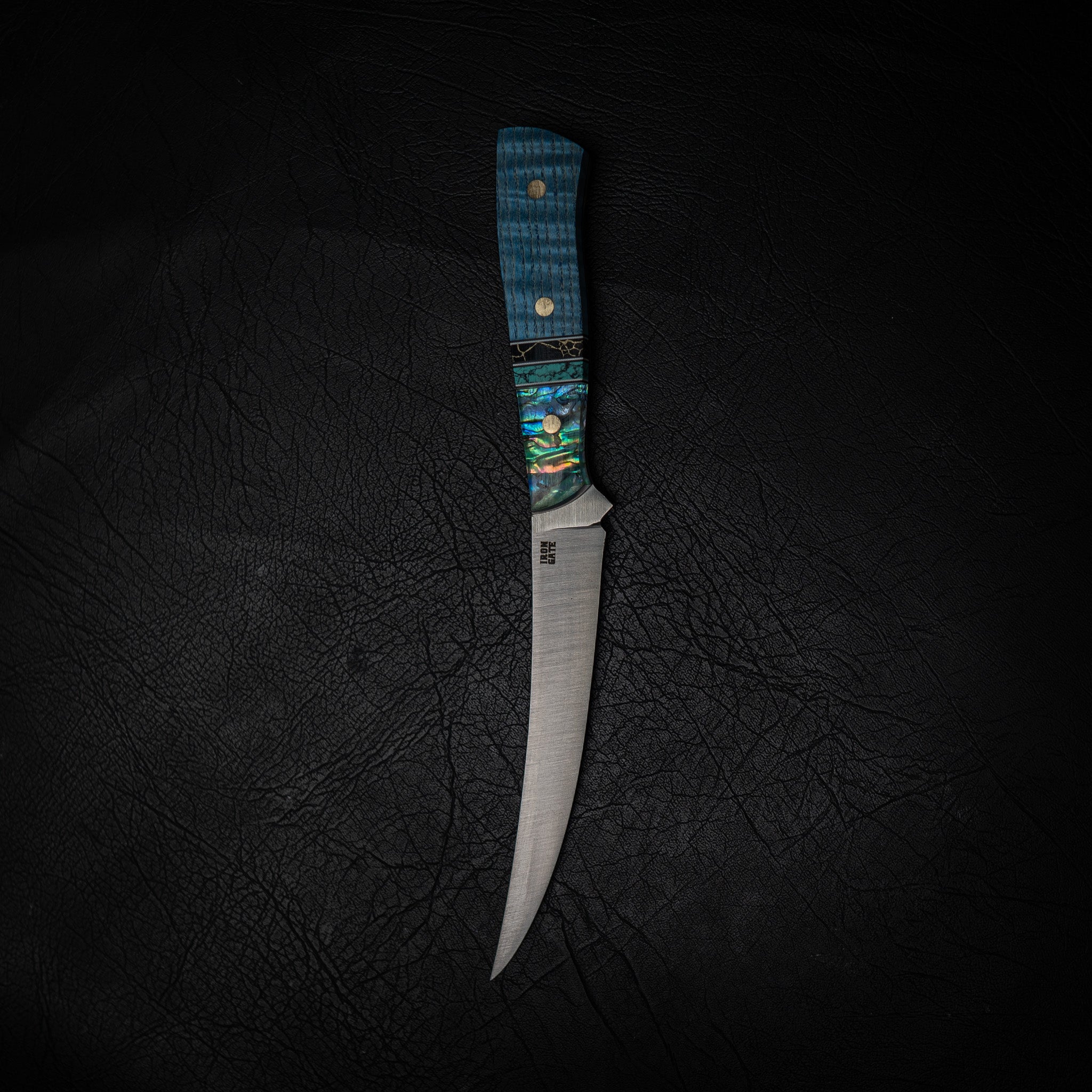 This Boning Knife is forged from Nitro-V stainless steel, offering exceptional edge retention, toughness, and corrosion resistance — built for both the kitchen and the coast. With a 160 mm cutting edge and 290 mm overall length, it’s a stiff, balanced knife made for clean, confident cuts through meat and larger fish.