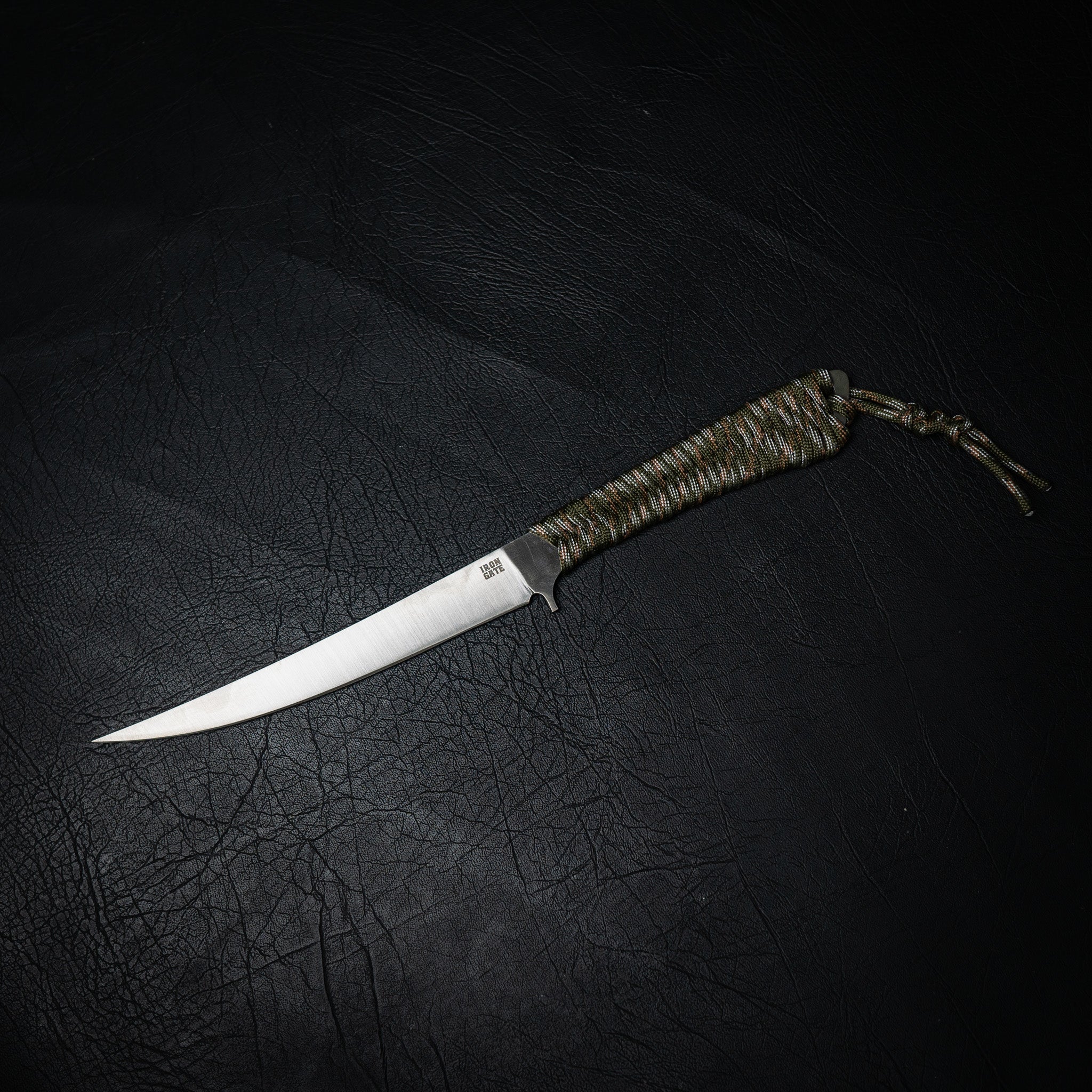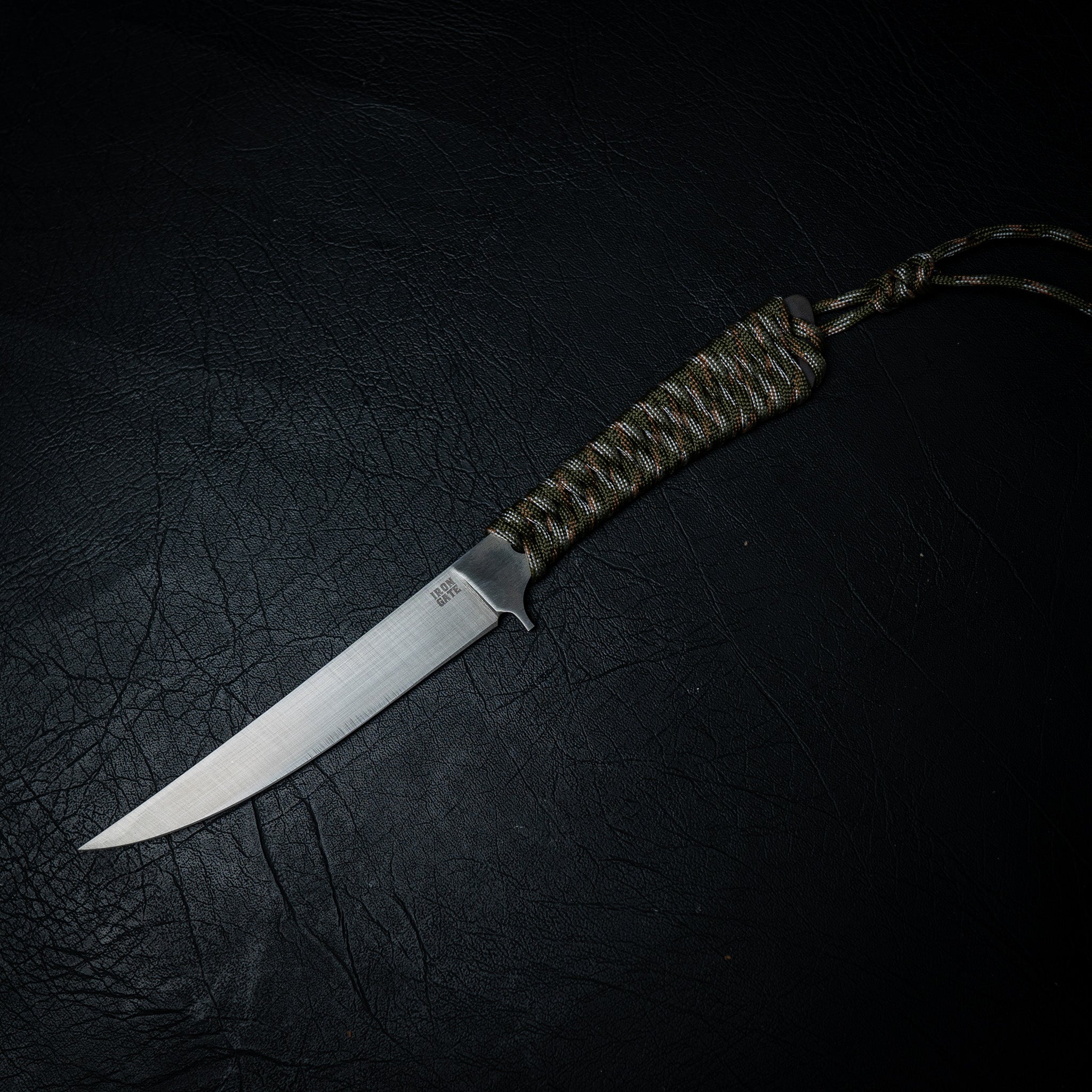 This Paracord Boning Knife is forged from Nitro-V stainless steel, offering a razor-sharp edge, high corrosion resistance, and the toughness needed for serious outdoor or kitchen use. With a 140 mm cutting edge and 270 mm overall length, it’s a smaller, more agile version of our full-size boning knife — perfect for breaking down fish, trimming meat, or detailed prep work.
